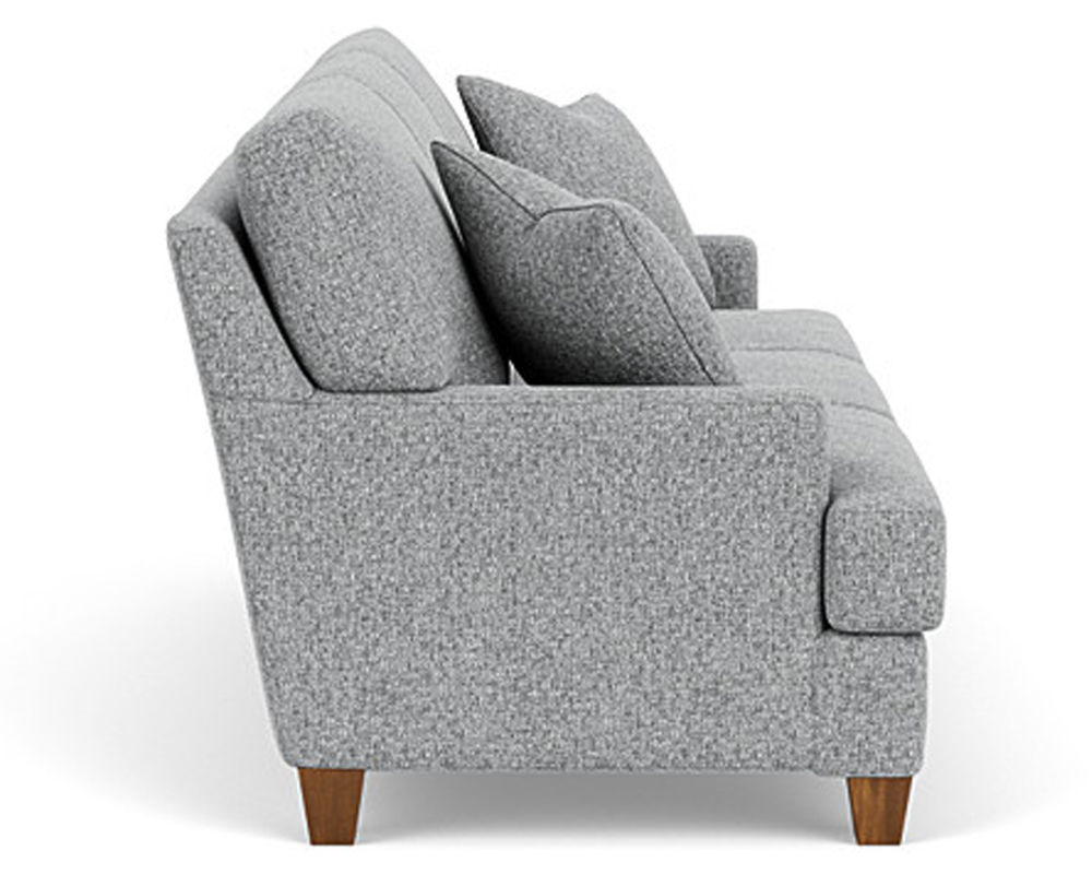 Cozy up with a loved one or claim it all for yourself with the Flexsteel sofa that lets you personalize details for the perfect look and feel. Sleek track arms provide a contemporary vibe. Square tapered leg in a choice of three distinct wood finishes-Florentine, Valencia, or Urban Renewal-to complement any decor. The removable T-shaped seat cushions offer a distinctive look and added comfort. Sink into the ideal level of support with your choice of our luxury or plush cushions. Complete the look and showcase your lifestyle with hundreds of different fabric choices, including high-performance and sustainable textiles. Superior frame construction and our patented C-Flex Blue Steel Springâ„¢ ensures your Flexsteel sofa can be enjoyed for years to come.