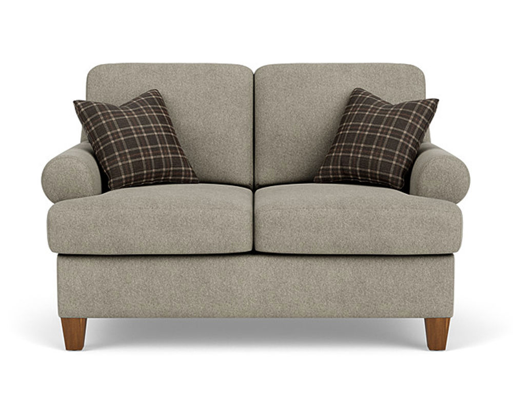 Cozy up with a loved one or claim it all for yourself with the Flexsteel chair that lets you personalize details for the perfect look and feel. A classic silhouette with casual, curved sock arms sits on square tapered legs that are available in three distinct finishes-Florentine, Valencia, or Urban Renewal-to complement any decor. The removable T-shaped seat cushions offer a distinctive look and added comfort. Sink into the ideal level of support with your choice of our luxury or plush cushions. Complete the look and showcase your lifestyle with hundreds of different fabric choices, including high-performance and sustainable textiles. Superior frame construction and our patented C-Flex Blue Steel Springâ„¢ ensures your Flexsteel Living Room can be enjoyed for years to come.