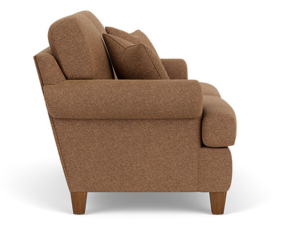 Cozy up with a loved one or claim it all for yourself with the Flexsteel loveseat that lets you personalize details for the perfect look and feel. A classic silhouette with casual, curved sock arms sits on square tapered legs that are available in three distinct finishes-Florentine, Valencia, or Urban Renewal-to complement any decor. The removable T-shaped seat cushions offer a distinctive look and added comfort. Sink into the ideal level of support with your choice of our luxury or plush cushions. Complete the look and showcase your lifestyle with hundreds of different fabric choices, including high-performance and sustainable textiles. Superior frame construction and our patented C-Flex Blue Steel Springâ„¢ ensures your Flexsteel Living Room can be enjoyed for years to come.