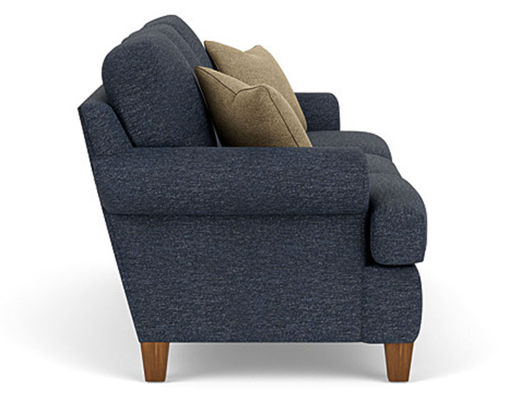 Cozy up with a loved one or claim it all for yourself with the Flexsteel sofa that lets you personalize details for the perfect look and feel. A classic silhouette with casual, curved sock arms sits on square tapered legs that are available in three distinct finishes-Florentine, Valencia, or Urban Renewal-to complement any decor. The removable T-shaped seat cushions offer a distinctive look and added comfort. Sink into the ideal level of support with your choice of our luxury or plush cushions. Complete the look and showcase your lifestyle with hundreds of different fabric choices, including high-performance and sustainable textiles. Superior frame construction and our patented C-Flex Blue Steel Springâ„¢ ensures your Flexsteel Living Room can be enjoyed for years to come.