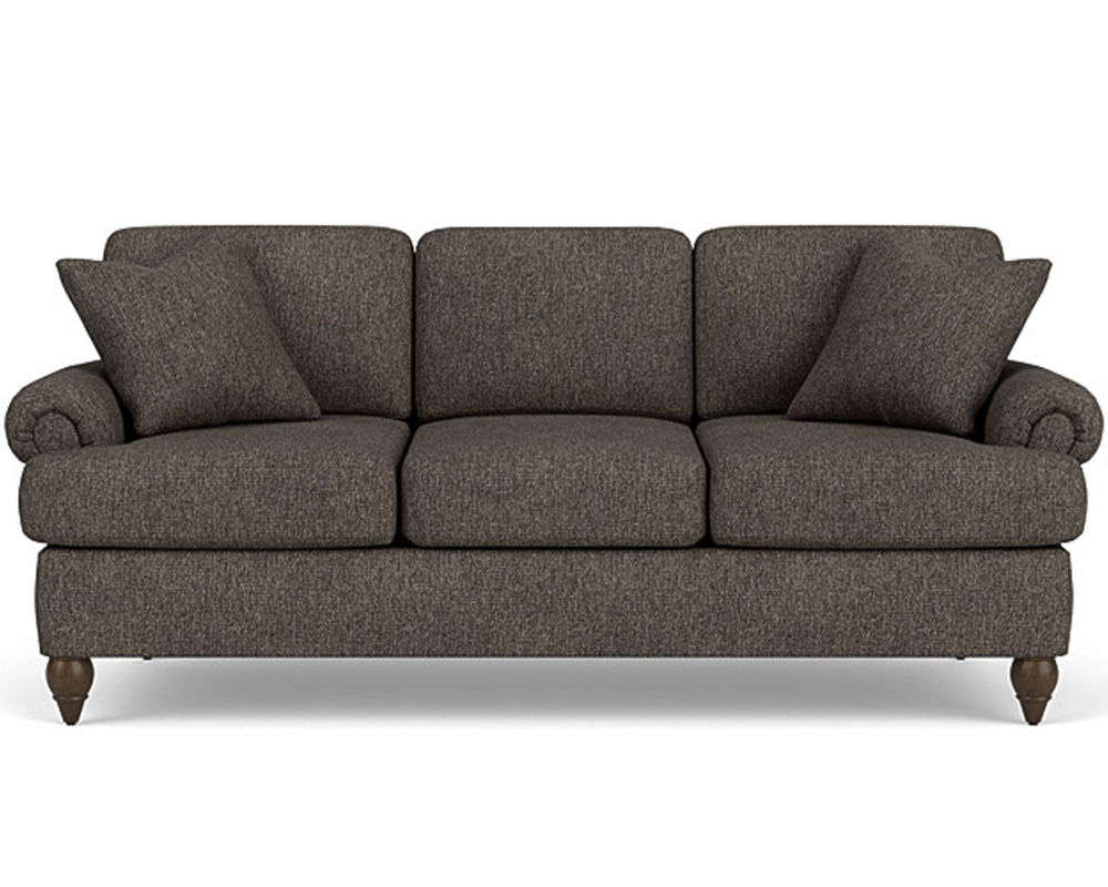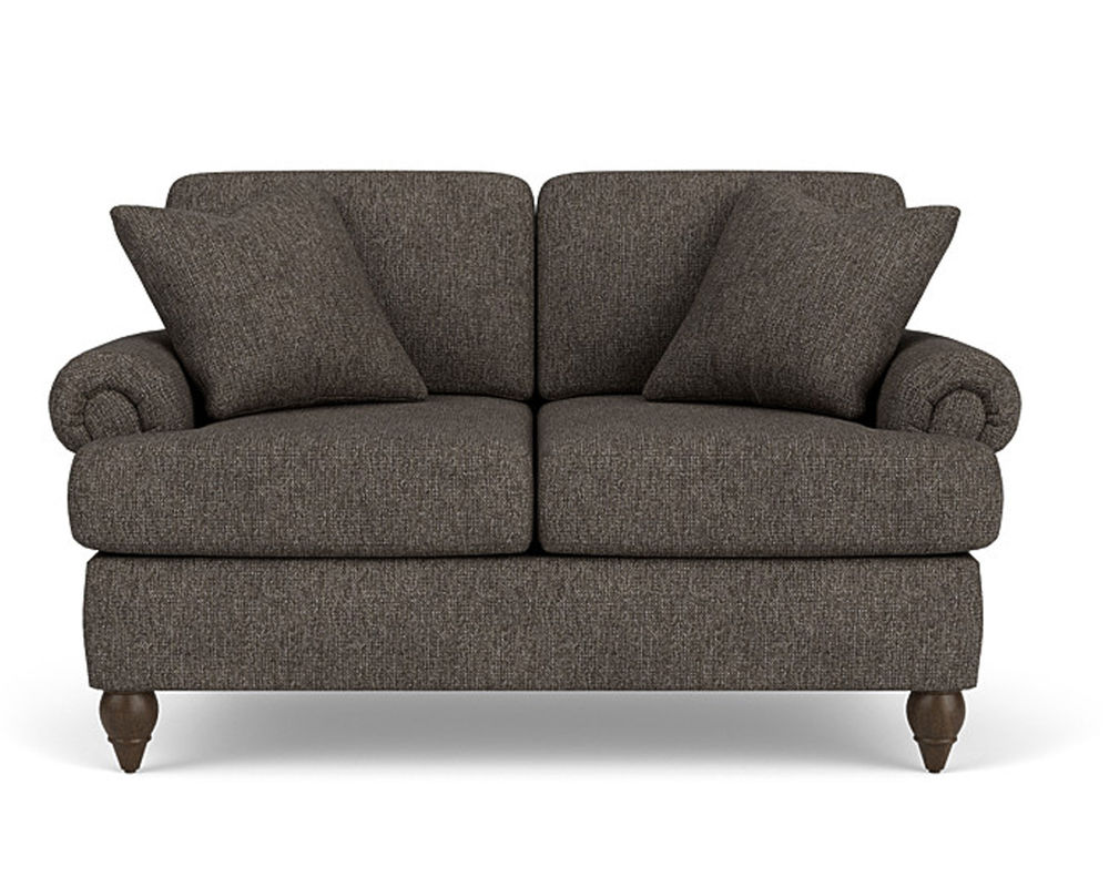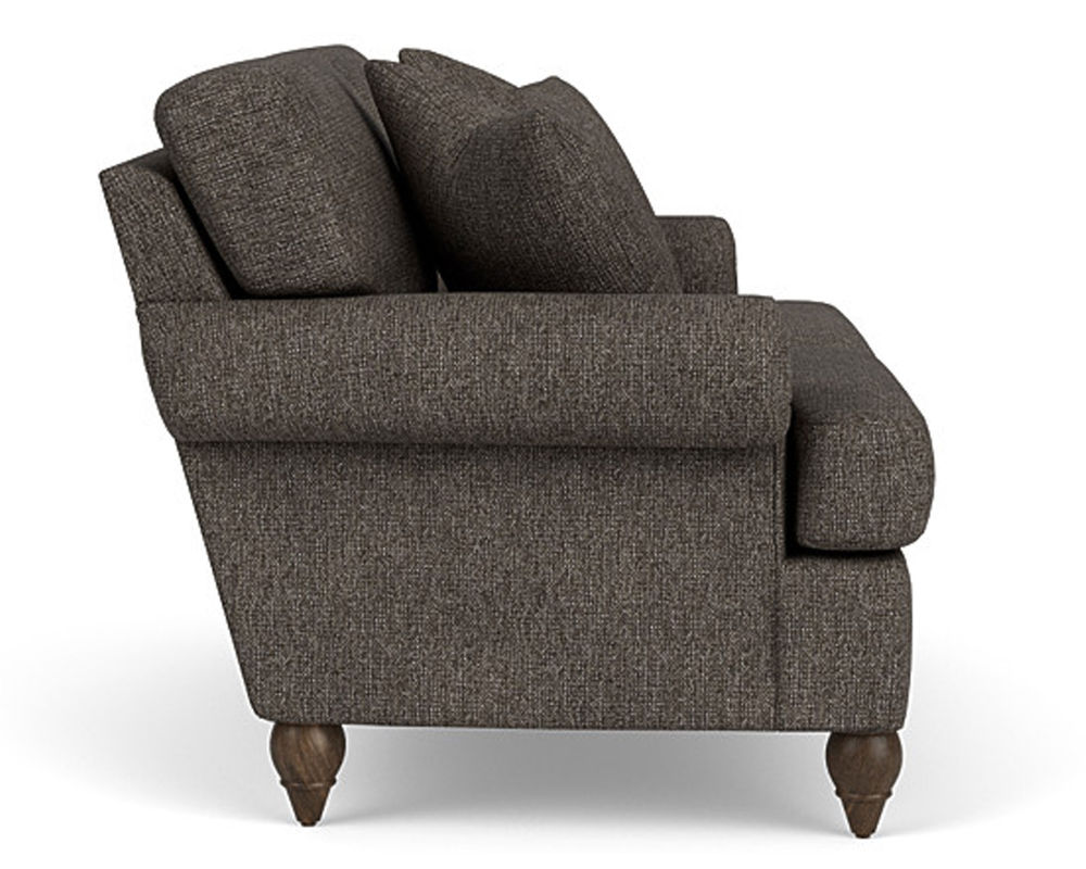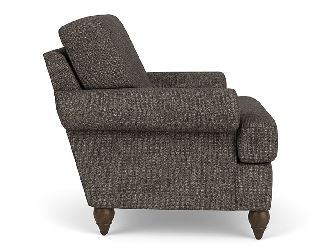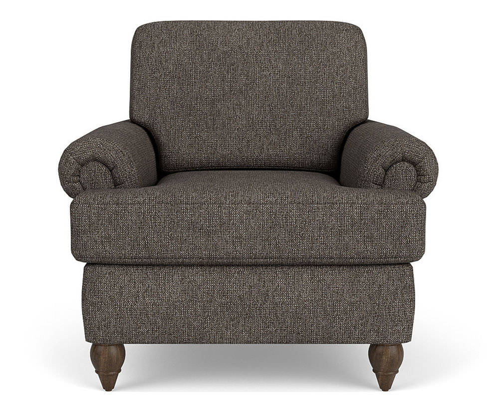 The Flexsteel chair ensures you never have to settle for anything other than the perfect design, no matter your style. Formal panel roll arms sit on round turned legs that are available in three distinct wood finishes-Florentine, Valencia, or Urban Renewal-to complement any decor. The removable T-shaped seat cushion offers a distinctive look and added comfort. Sink into the ideal level of support with your choice of our luxury or plush cushion. Complete the look and showcase your lifestyle with hundreds of different fabric choices, including high-performance and sustainable textiles. Superior frame construction and our patented C-Flex Blue Steel Springâ„¢ ensures your Flexsteel Living Room can be enjoyed for years to come.