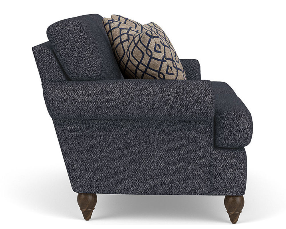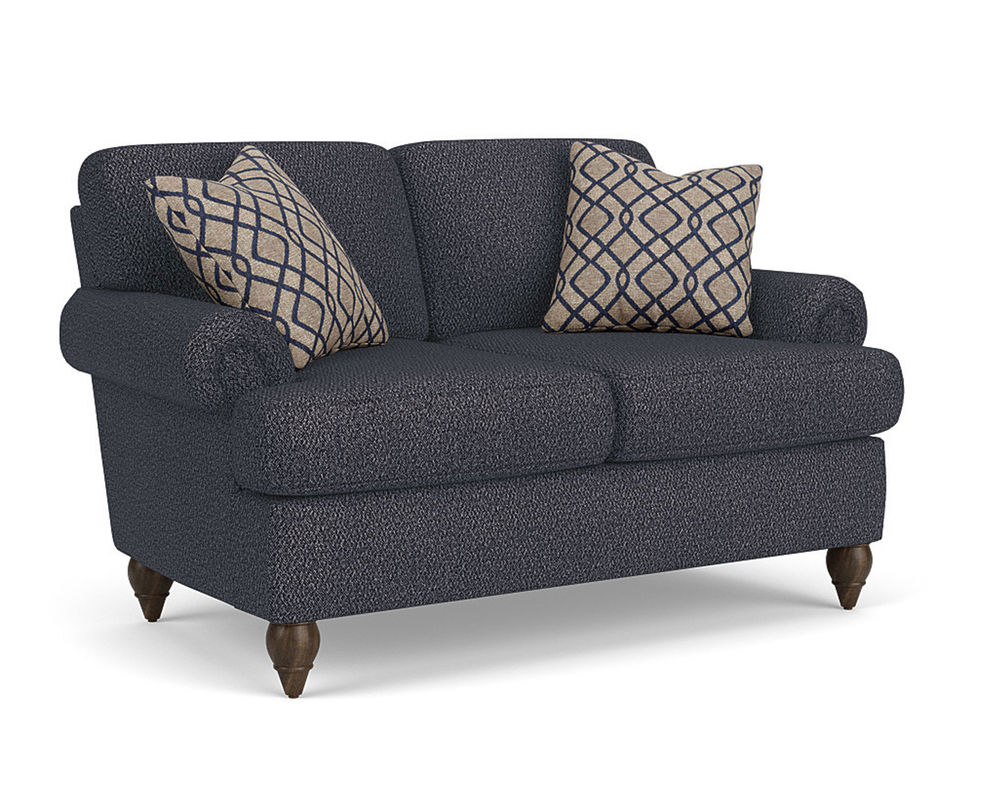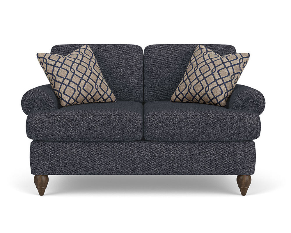 Cozy up with a loved one or claim it all for yourself with the Flexsteel loveseat that lets you personalize details for the perfect look and feel. Formal panel roll arms sit on round turned legs that are available in a choice of three distinct wood finishes-Florentine, Valencia, or Urban Renewal-to complement any decor. The removable T-shaped seat cushions offer a distinctive look and added comfort. Sink into the ideal level of support with your choice of our luxury or plush cushions. Complete the look and showcase your lifestyle with hundreds of different fabric choices, including high-performance and sustainable textiles. Superior frame construction and our patented C-Flex Blue Steel Springâ„¢ ensures your Flexsteel Living Room can be enjoyed for years to come.