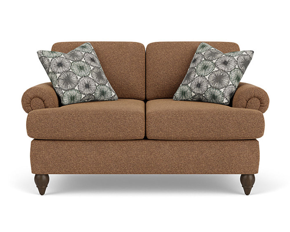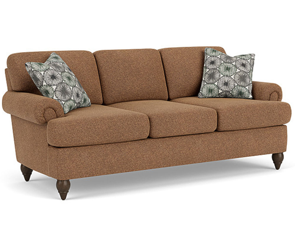 Cozy up with a loved one or claim it all for yourself with the Flexsteel sofa that lets you personalize details for the perfect look and feel. Formal panel roll arms sit on round turned legs that are available in a choice of three distinct wood finishes-Florentine, Valencia, or Urban Renewal-to complement any decor. The removable T-shaped seat cushions offer a distinctive look and added comfort. Sink into the ideal level of support with your choice of our luxury or plush cushions. Complete the look and showcase your lifestyle with hundreds of different fabric choices, including high-performance and sustainable textiles. Superior frame construction and our patented C-Flex Blue Steel Springâ„¢ ensures your Flexsteel Living Room can be enjoyed for years to come.