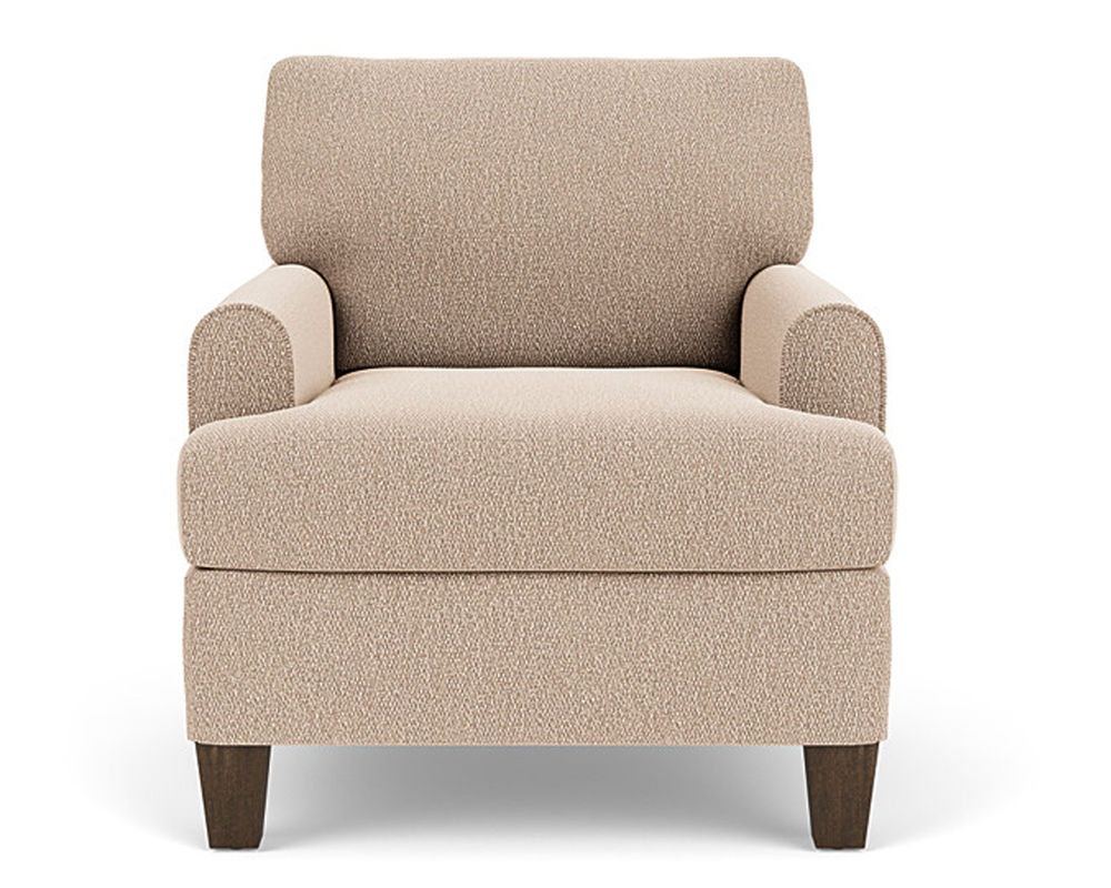 The Flexsteel chair ensures you never have to settle for anything other than the perfect design, no matter your style. Rounded mailbox arms provide a clean look. Square tapered legs come in your choice of three distinct wood finishes-Florentine, Valencia, or Urban Renewal-to complement any decor. The removable T-shaped seat cushion offers a distinctive look and added comfort. Sink into the ideal level of support with your choice of our luxury or plush cushion. Complete the look and showcase your lifestyle with hundreds of different fabric choices, including high-performance and sustainable textiles. Superior frame construction and our patented C-Flex Blue Steel Springâ„¢ ensures your Flexsteel Living Room can be enjoyed for years to come.