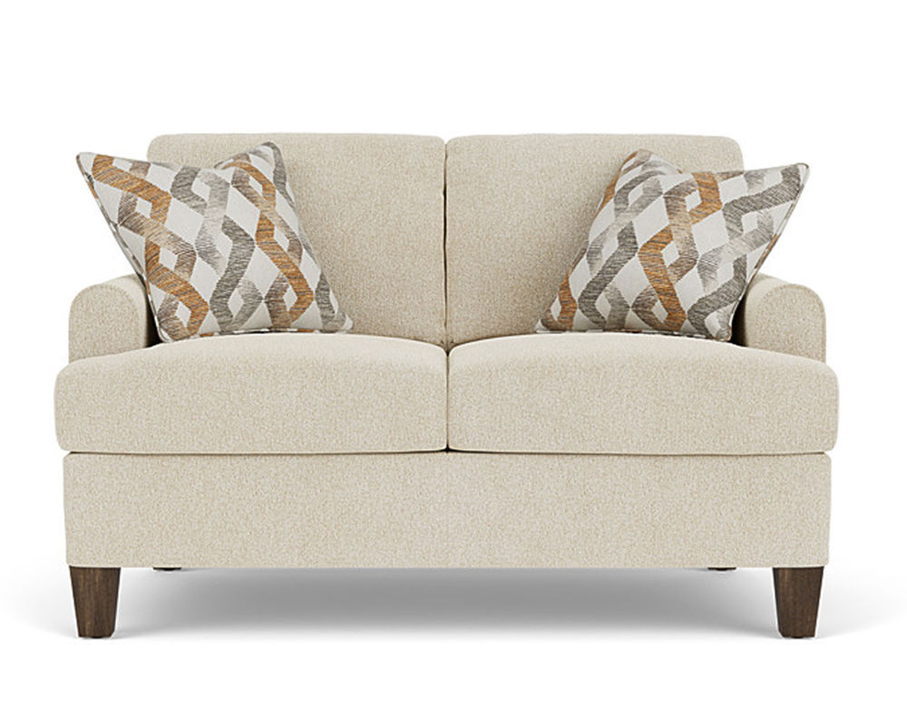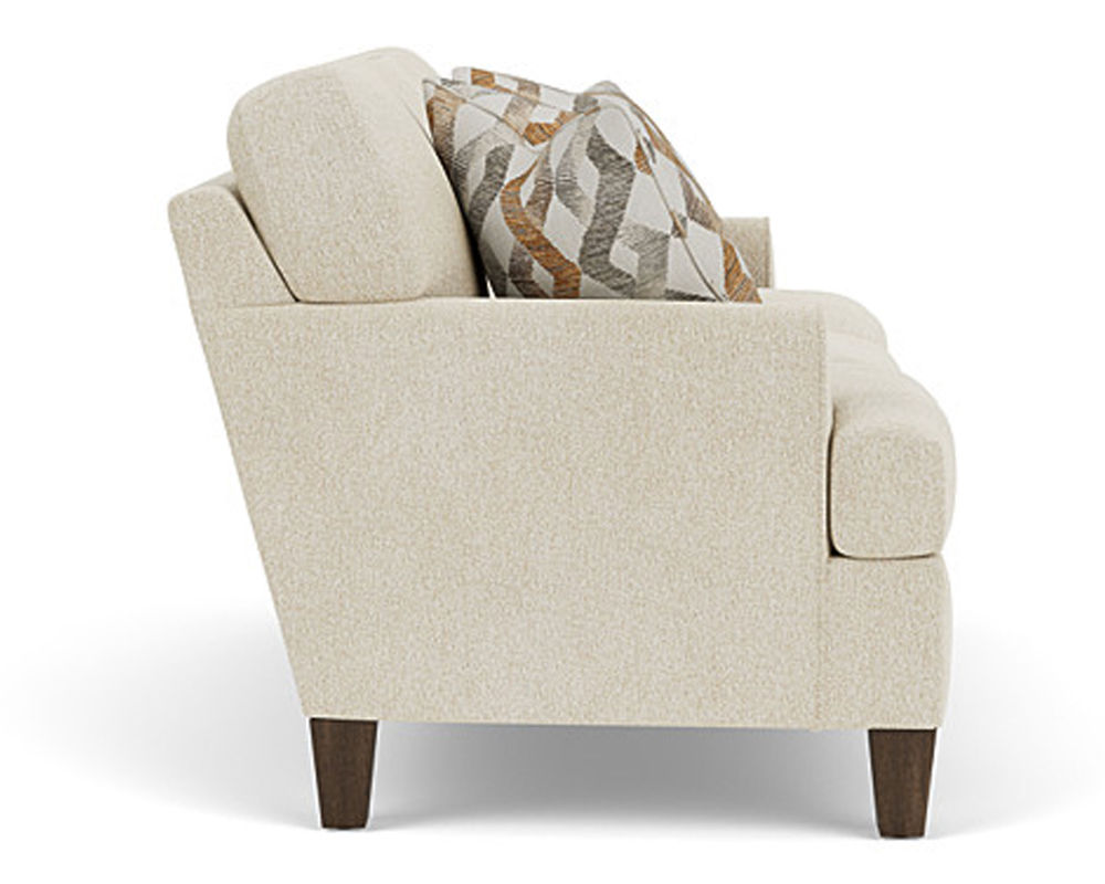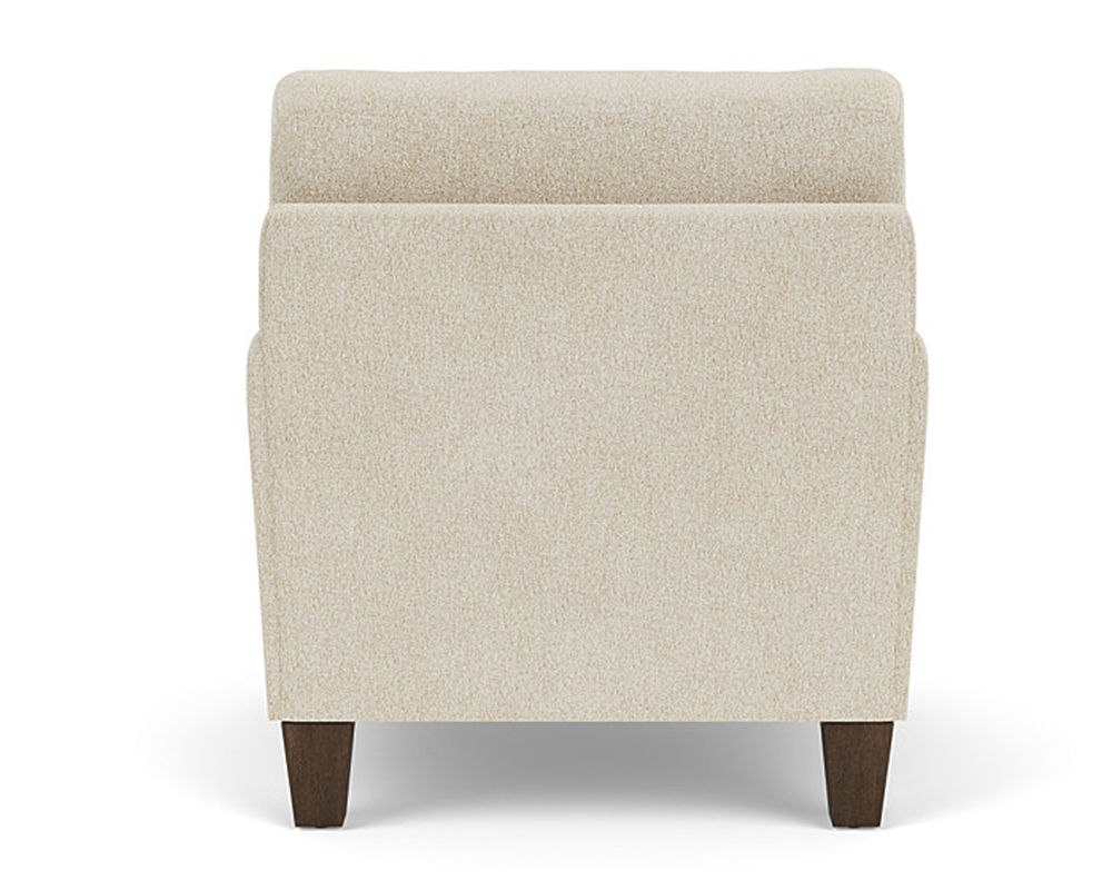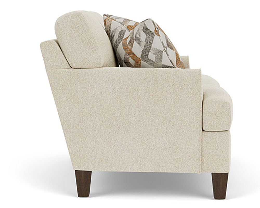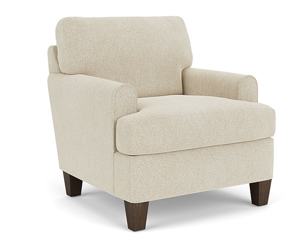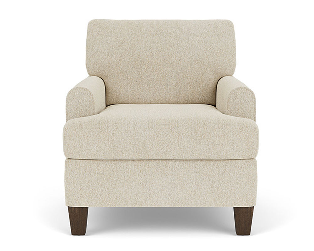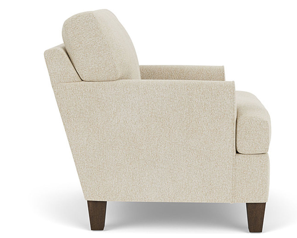 The Flexsteel chair ensures you never have to settle for anything other than the perfect design, no matter your style. Rounded mailbox arms provide a clean look. Square tapered legs come in your choice of three distinct wood finishes-Florentine, Valencia, or Urban Renewal-to complement any decor. The removable T-shaped seat cushion offers a distinctive look and added comfort. Sink into the ideal level of support with your choice of our luxury or plush cushion. Complete the look and showcase your lifestyle with hundreds of different fabric choices, including high-performance and sustainable textiles. Superior frame construction and our patented C-Flex Blue Steel Springâ„¢ ensures your Flexsteel Living Room can be enjoyed for years to come.