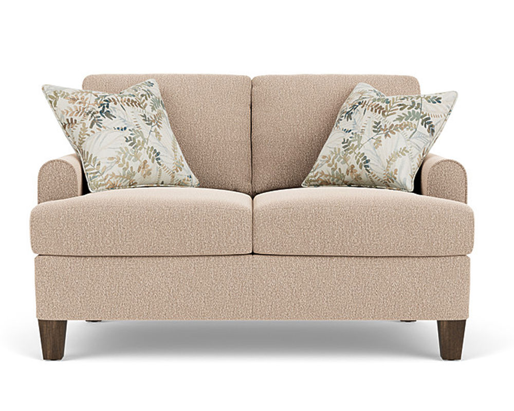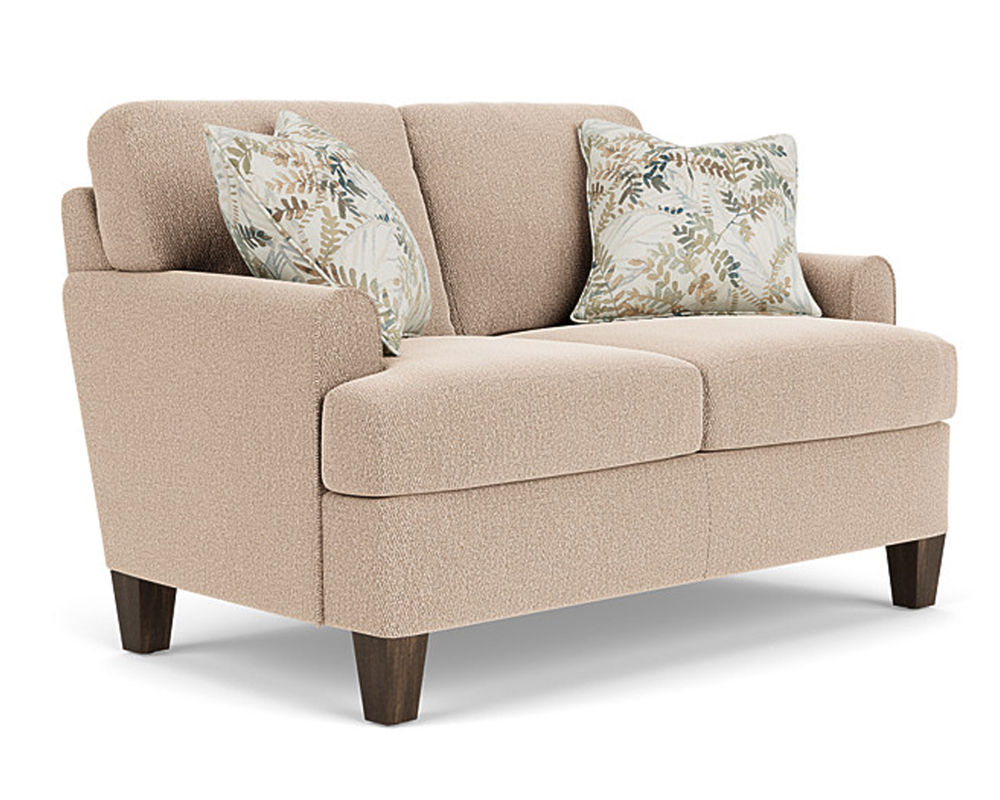 The Flexsteel loveseat ensures you never have to settle for anything other than the perfect design, no matter your style. Rounded mailbox arms provide a clean look. Square tapered legs come in your choice of three distinct wood finishes-Florentine, Valencia, or Urban Renewal-to complement any decor. The removable T-shaped seat cushions offer a distinctive look and added comfort. Sink into the ideal level of support with your choice of our luxury or plush cushions. Complete the look and showcase your lifestyle with hundreds of different fabric choices, including high-performance and sustainable textiles. Superior frame construction and our patented C-Flex Blue Steel Springâ„¢ ensures your Flexsteel Living Room can be enjoyed for years to come.
