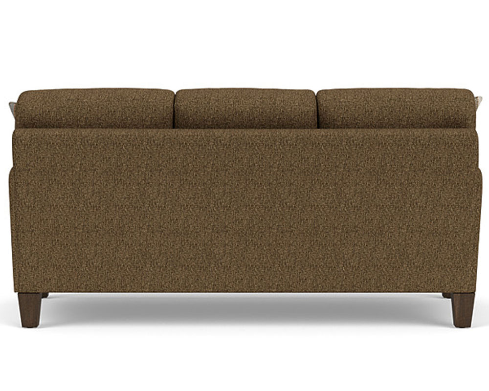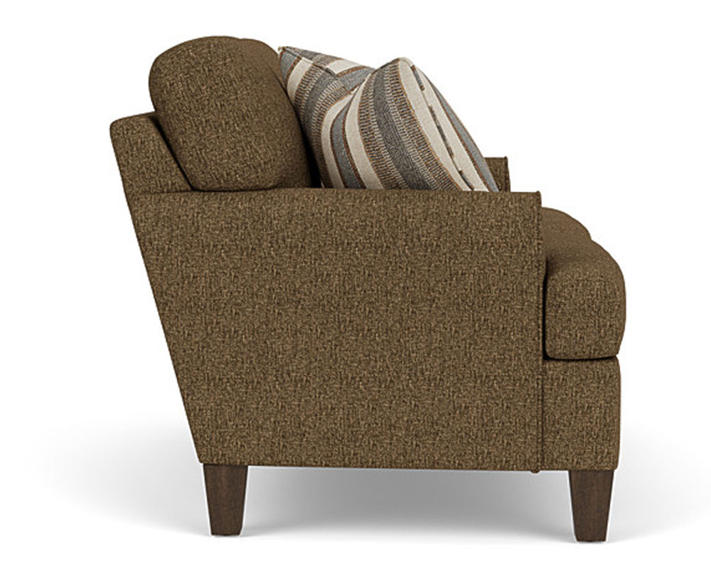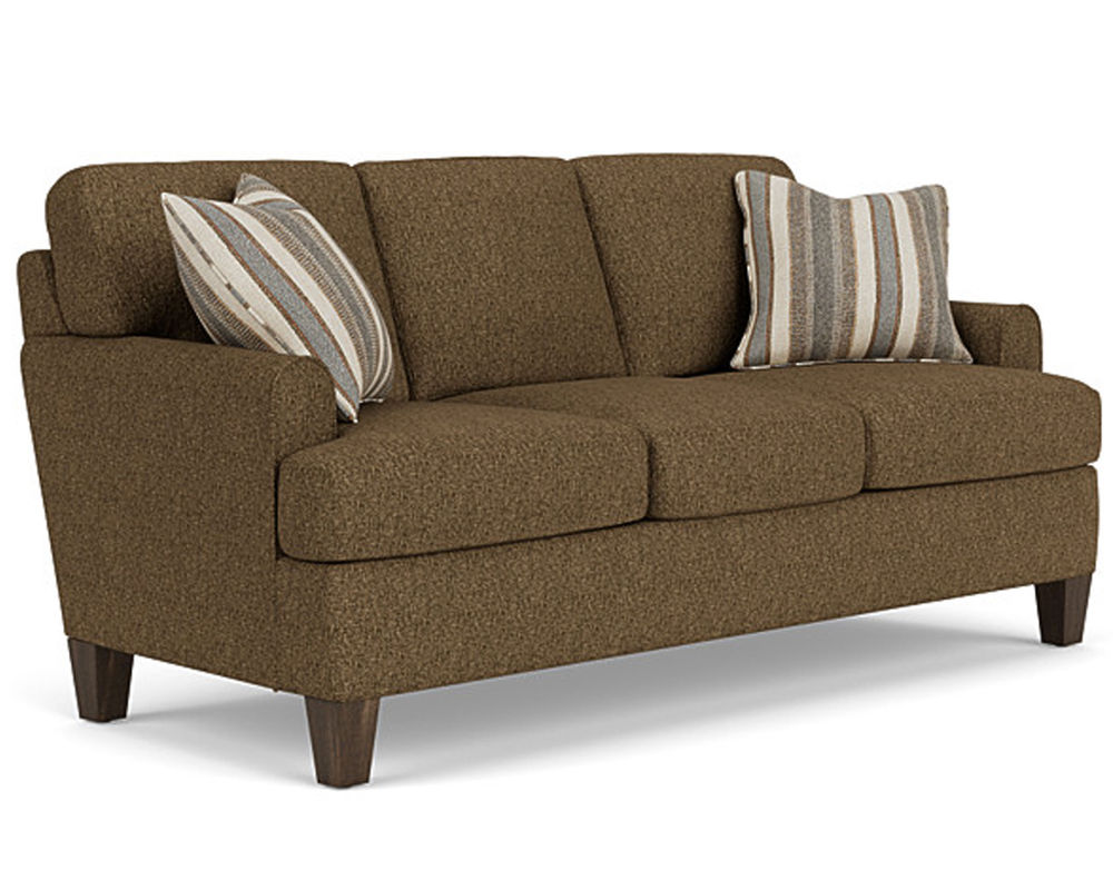 The Flexsteel sofa ensures you never have to settle for anything other than the perfect design, no matter your style. Rounded mailbox arms provide a clean look. Square tapered legs come in your choice of three distinct wood finishes-Florentine, Valencia, or Urban Renewal-to complement any decor. The removable T-shaped seat cushions offer a distinctive look and added comfort. Sink into the ideal level of support with your choice of our luxury or plush cushions. Complete the look and showcase your lifestyle with hundreds of different fabric choices, including high-performance and sustainable textiles. Superior frame construction and our patented C-Flex Blue Steel Springâ„¢ ensures your Flexsteel Living Room can be enjoyed for years to come.