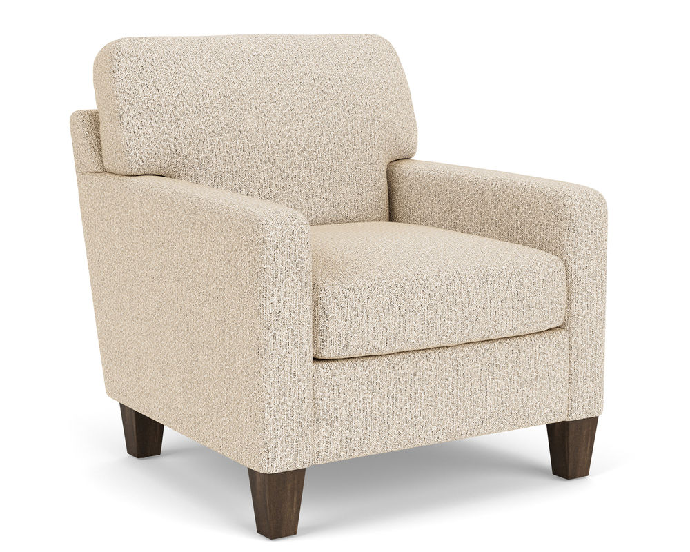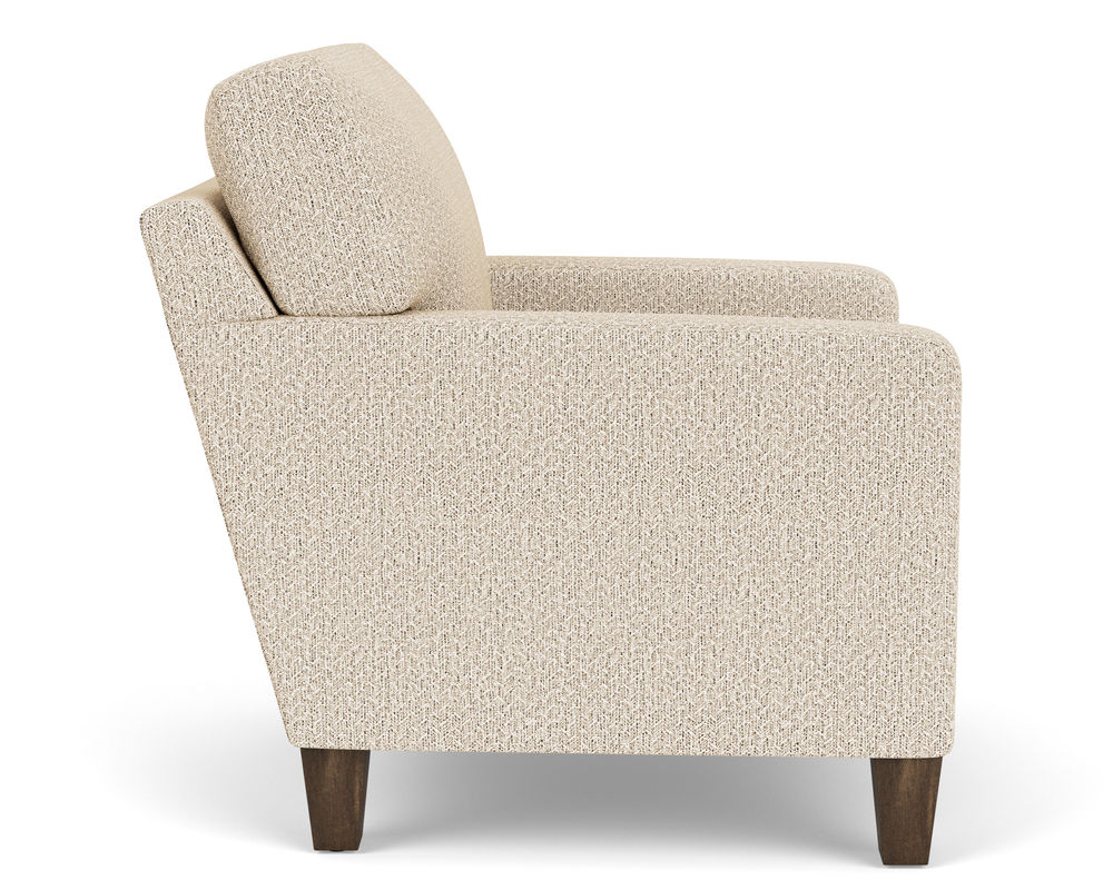 The Flexsteel chair ensures you never have to settle for anything other than the perfect design, no matter your style. Straight track arms provide a clean look. Square tapered legs come in your choice of three distinct wood finishes-Florentine, Valencia, or Urban Renewal-to complement any decor. The removable square, inside seat cushion style offers you the flexibility to rotate for added longevity. Sink into the ideal level of support with your choice of our luxury or plush cushion. Complete the look and showcase your lifestyle with hundreds of different fabric choices, including high-performance and sustainable textiles. Superior frame construction and our patented C-Flex Blue Steel Springâ„¢ ensures your Flexsteel Living Room can be enjoyed for years to come.
