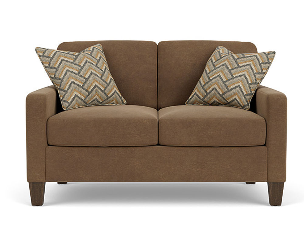 Cozy up with a loved one or claim it all for yourself with the Flexsteel loveseat that lets you personalize details for the perfect look and feel. Straight track arms provide a clean look. Square tapered legs come in your choice of three distinct wood finishes-Florentine, Valencia, or Urban Renewal-to complement any decor. The removable square, inside seat cushion style offers you the flexibility to rotate for added longevity. Sink into the ideal level of support with your choice of our luxury or plush cushions. Complete the look and showcase your lifestyle with hundreds of different fabric choices, including high-performance and sustainable textiles. Superior frame construction and our patented C-Flex Blue Steel Springâ„¢ ensures your Flexsteel Furniture can be enjoyed for years to come.