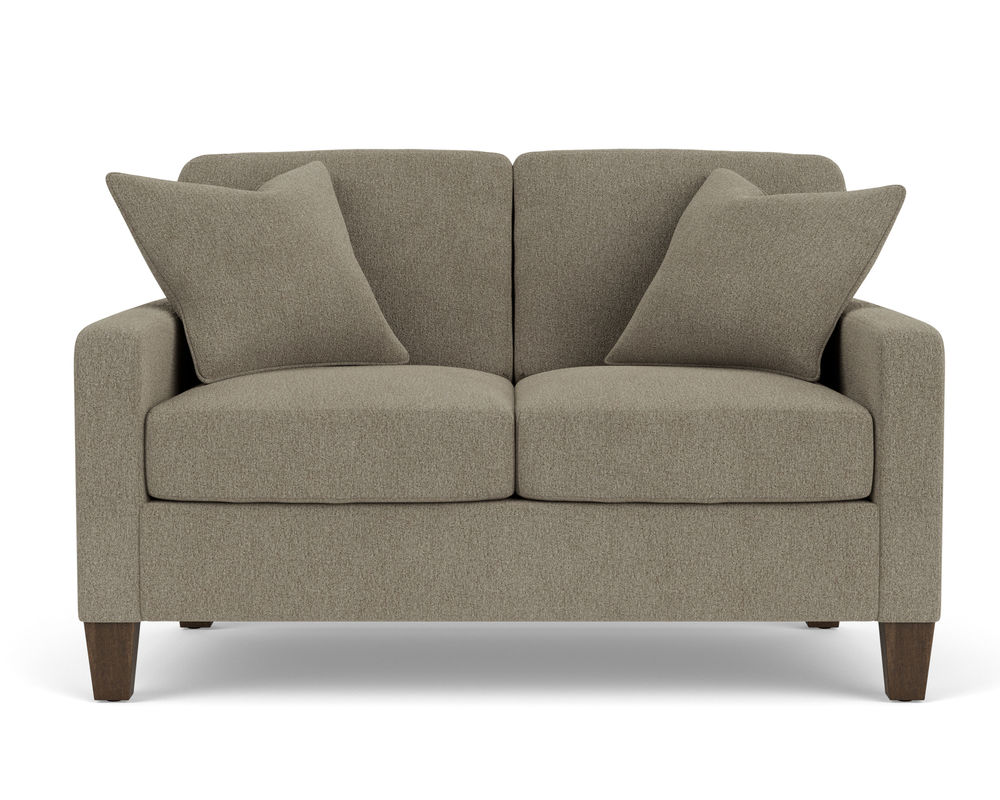Cozy up with a loved one or claim it all for yourself with the Flexsteel loveseat that lets you personalize details for the perfect look and feel. Straight track arms provide a clean look. Square tapered legs come in your choice of three distinct wood finishes-Florentine, Valencia, or Urban Renewal-to complement any decor. The removable square, inside seat cushion style offers you the flexibility to rotate for added longevity. Sink into the ideal level of support with your choice of our luxury or plush cushions. Complete the look and showcase your lifestyle with hundreds of different fabric choices, including high-performance and sustainable textiles. Superior frame construction and our patented C-Flex Blue Steel Springâ„¢ ensures your Flexsteel Furniture can be enjoyed for years to come.