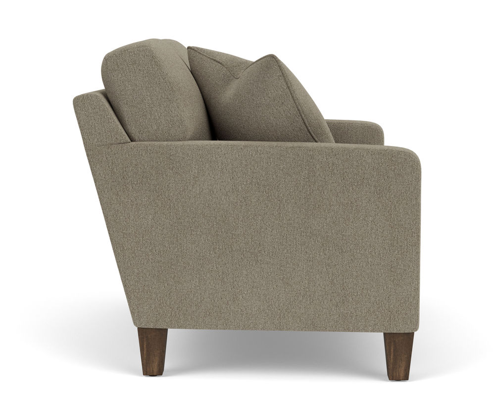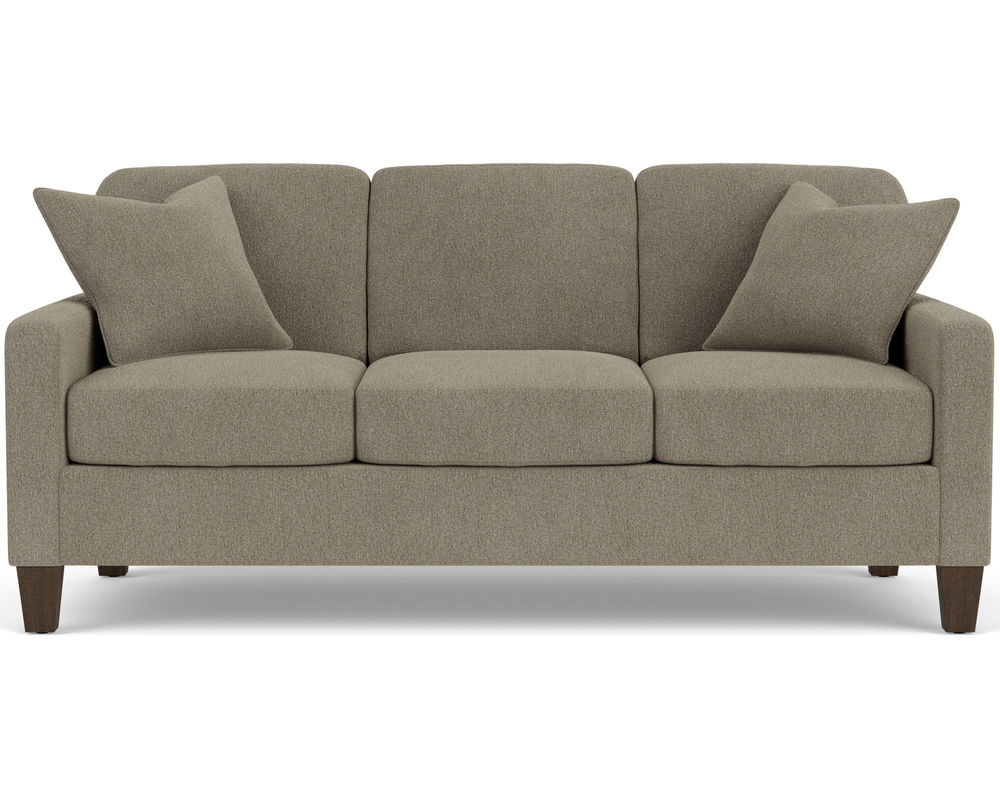 Cozy up with a loved one or claim it all for yourself with the Flexsteel sofa that lets you personalize details for the perfect look and feel. Straight track arms provide a clean look. Square tapered legs come in your choice of three distinct wood finishes-Florentine, Valencia, or Urban Renewal-to complement any decor. The removable square, inside seat cushion style offers you the flexibility to rotate for added longevity. Sink into the ideal level of support with your choice of our luxury or plush cushions. Complete the look and showcase your lifestyle with hundreds of different fabric choices, including high-performance and sustainable textiles. Superior frame construction and our patented C-Flex Blue Steel Springâ„¢ ensures your Flexsteel Living Room can be enjoyed for years to come.
