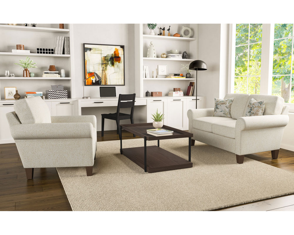 Cozy up with a loved one or claim it all for yourself with the Flexsteel loveseat that lets you personalize details for the perfect look and feel. A classic silhouette with casual, curved sock arms sits on square tapered legs that are available in three distinct wood finishes-Florentine, Valencia, or Urban Renewal-to complement any decor. The removable square, inside seat cushion style offers you the flexibility to rotate for added longevity. Sink into the ideal level of support with your choice of our luxury or plush cushions. Complete the look and showcase your lifestyle with hundreds of different fabric choices, including high-performance and sustainable textiles. Superior frame construction and our patented C-Flex Blue Steel Springâ„¢ ensures your Flexsteel Living Room can be enjoyed for years to come.