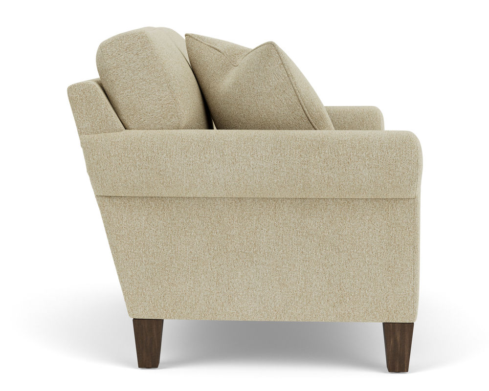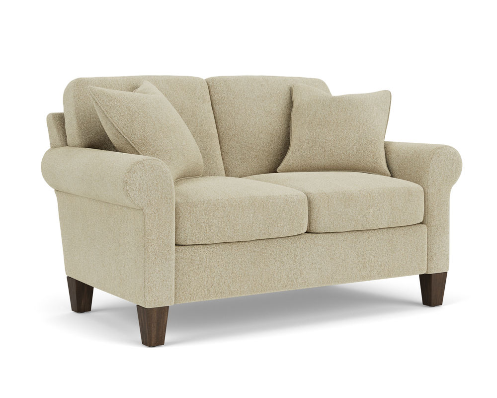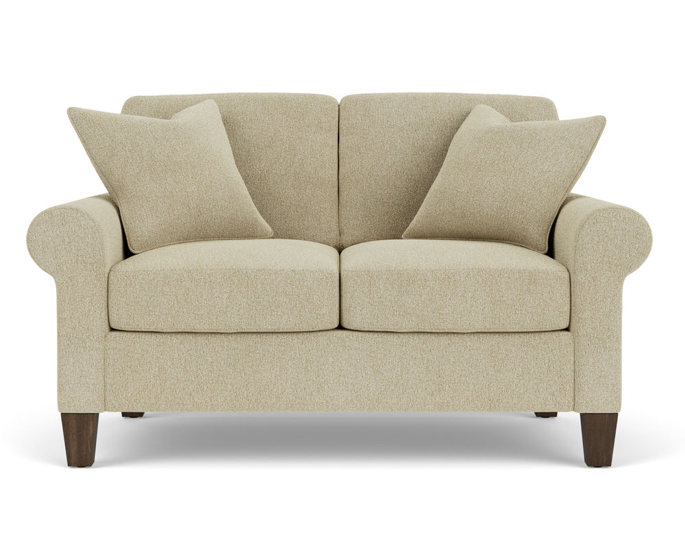 Cozy up with a loved one or claim it all for yourself with the Flexsteel loveseat that lets you personalize details for the perfect look and feel. A classic silhouette with casual, curved sock arms sits on square tapered legs that are available in three distinct wood finishes-Florentine, Valencia, or Urban Renewal-to complement any decor. The removable square, inside seat cushion style offers you the flexibility to rotate for added longevity. Sink into the ideal level of support with your choice of our luxury or plush cushions. Complete the look and showcase your lifestyle with hundreds of different fabric choices, including high-performance and sustainable textiles. Superior frame construction and our patented C-Flex Blue Steel Springâ„¢ ensures your Flexsteel Living Room can be enjoyed for years to come.