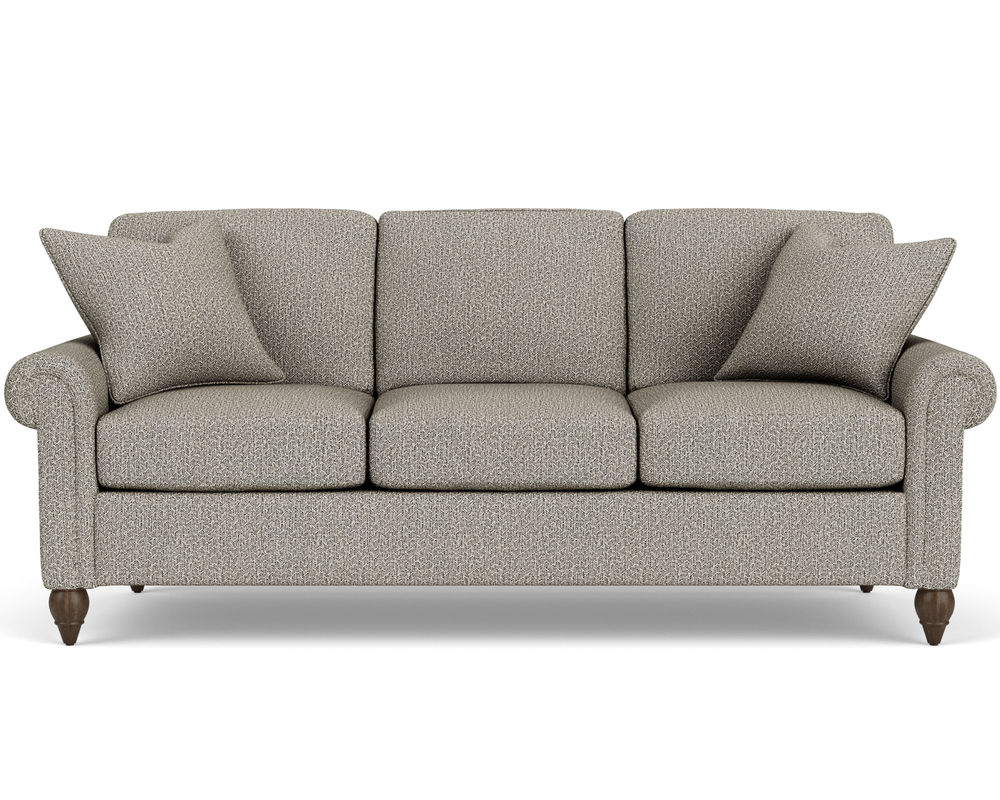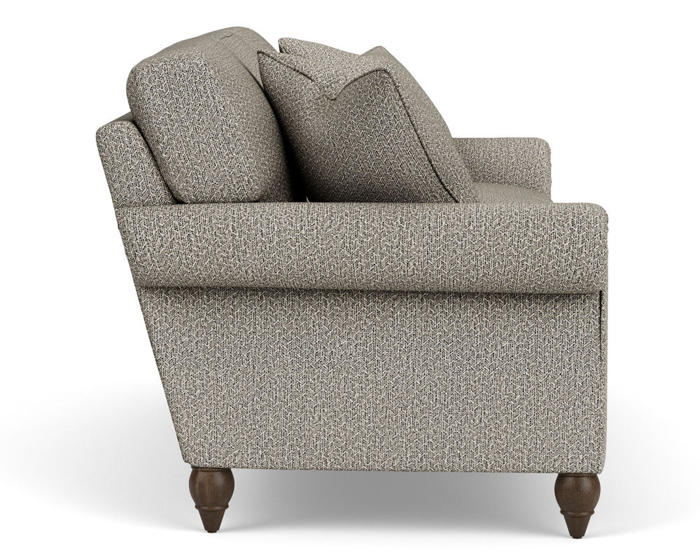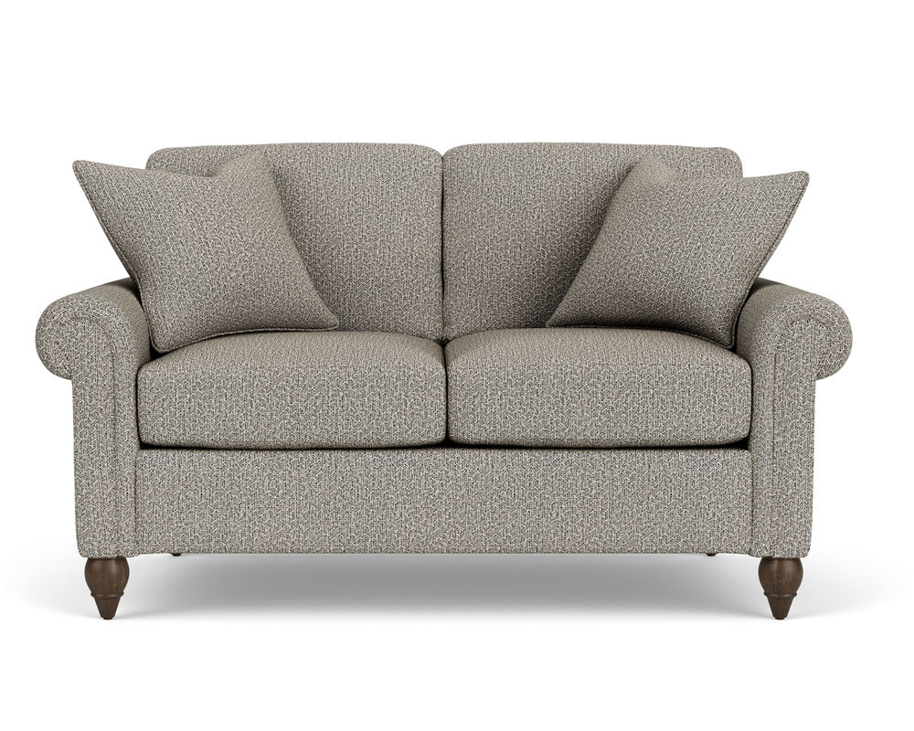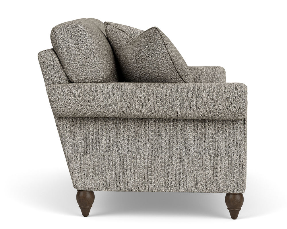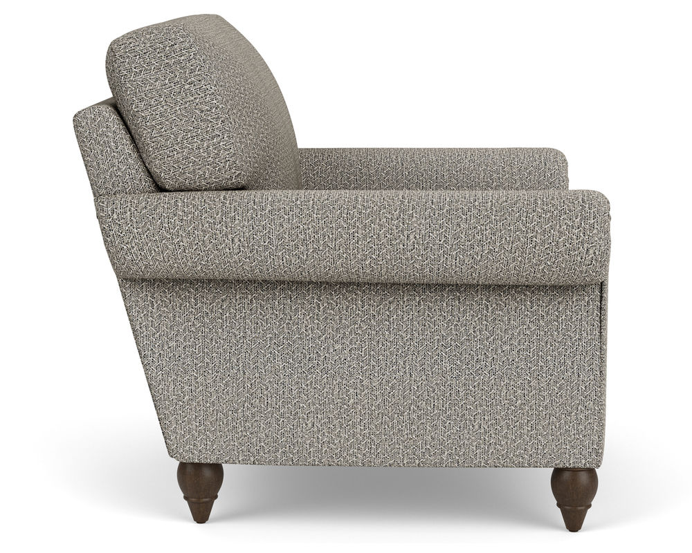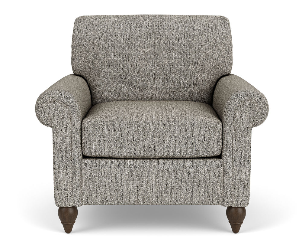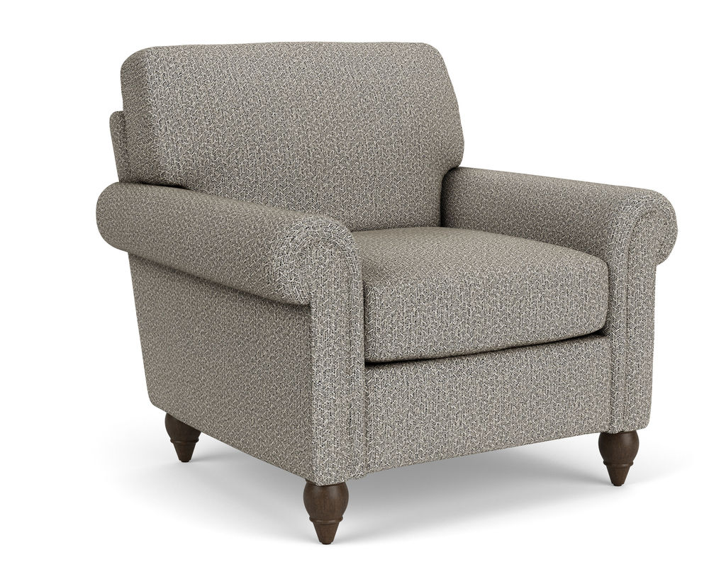 The Flexsteel chair ensures you never have to settle for anything other than the perfect design, no matter your style. Formal panel roll arms sit on round turned legs that are available in three distinct wood finishes-Florentine, Valencia, or Urban Renewal-to complement any decor. The removable T-shaped seat cushion offers a distinctive look and added comfort. Sink into the ideal level of support with your choice of our luxury or plush cushion. Complete the look and showcase your lifestyle with hundreds of different fabric choices, including high-performance and sustainable textiles. Superior frame construction and our patented C-Flex Blue Steel Springâ„¢ ensures your Flexsteel Living Room can be enjoyed for years to come.