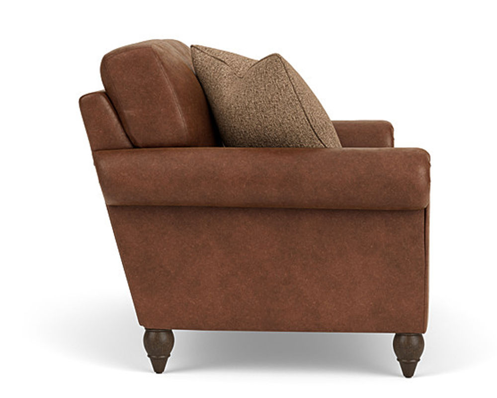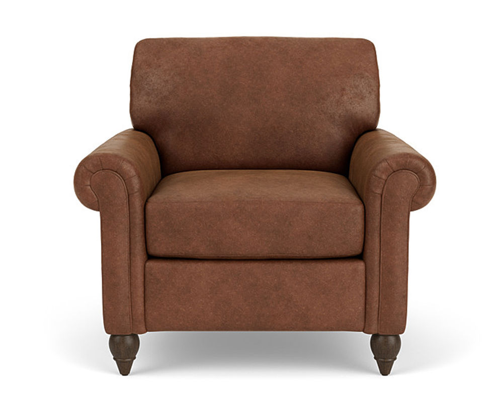 The Flexsteel chair ensures you never have to settle for anything other than the perfect design, no matter your style. Formal panel roll arms sit on round turned legs that are available in three distinct wood finishes-Florentine, Valencia, or Urban Renewal-to complement any decor. The removable T-shaped seat cushion offers a distinctive look and added comfort. Sink into the ideal level of support with your choice of our luxury or plush cushion. Complete the look and showcase your lifestyle with hundreds of different fabric choices, including high-performance and sustainable textiles. Superior frame construction and our patented C-Flex Blue Steel Springâ„¢ ensures your Flexsteel Living Room can be enjoyed for years to come.