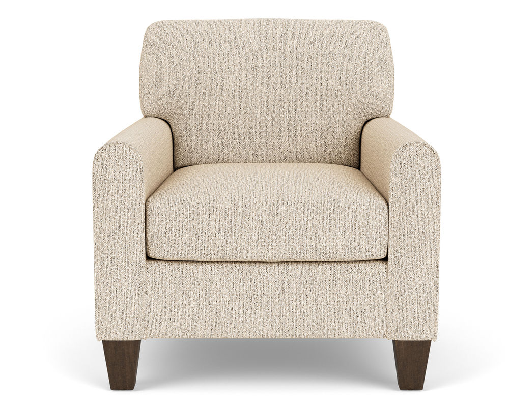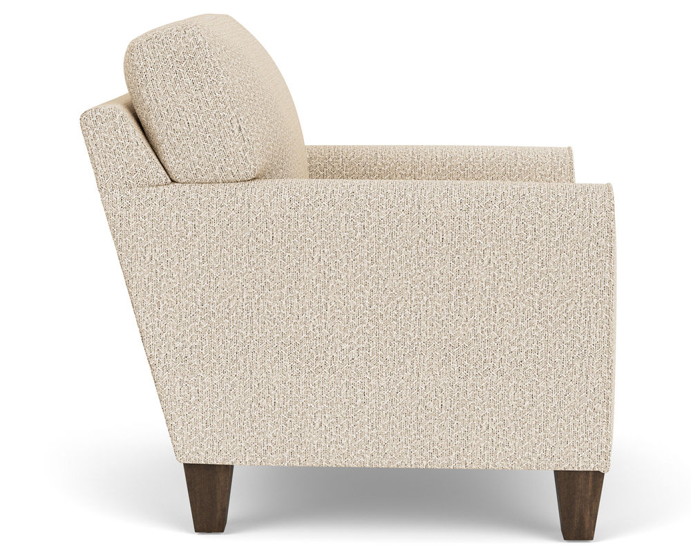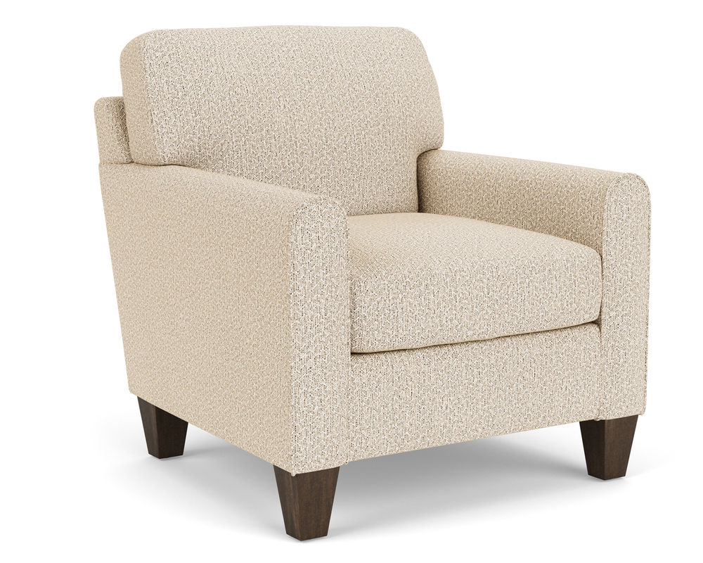 The Flexstel chair ensures you never have to settle for anything other than the perfect design, no matter your style. Rounded mailbox arms provide a clean look. Square tapered legs come in your choice of three distinct wood finishes-Florentine, Valencia, or Urban Renewal-to complement any decor. The removable square, inside seat cushion style offers you the flexibility to rotate for added longevity. Sink into the ideal level of support with your choice of our luxury or plush cushion. Complete the look and showcase your lifestyle with hundreds of different fabric choices, including high-performance and sustainable textiles. Superior frame construction and our patented C-Flex Blue Steel Springâ„¢ ensures your Flexsteel chair can be enjoyed for years to come.