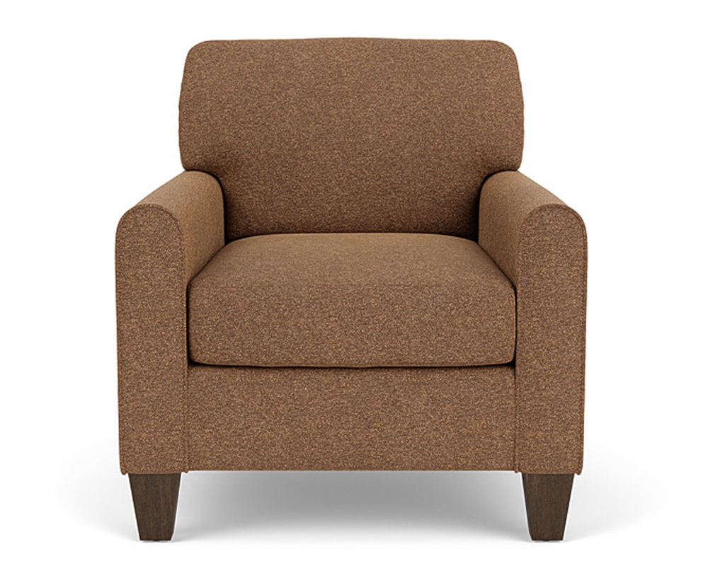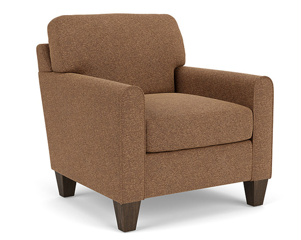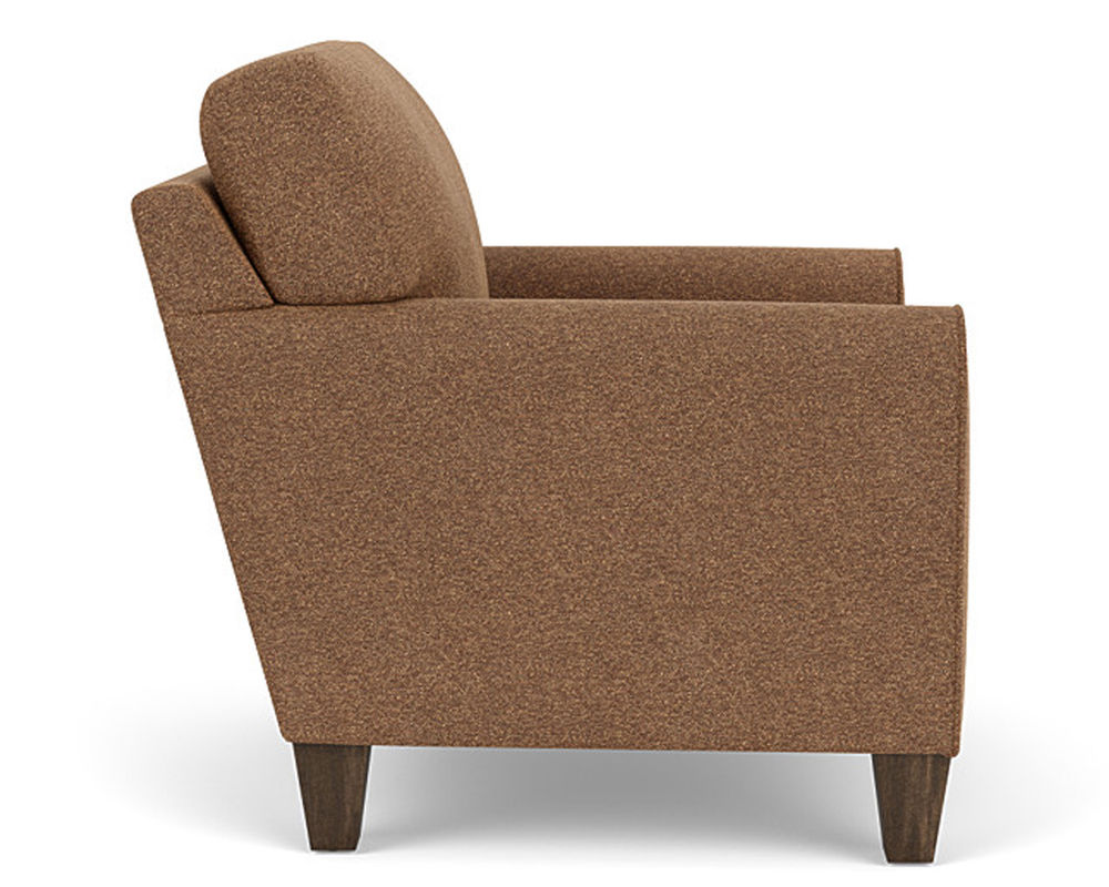 The Flexstel chair ensures you never have to settle for anything other than the perfect design, no matter your style. Rounded mailbox arms provide a clean look. Square tapered legs come in your choice of three distinct wood finishes-Florentine, Valencia, or Urban Renewal-to complement any decor. The removable square, inside seat cushion style offers you the flexibility to rotate for added longevity. Sink into the ideal level of support with your choice of our luxury or plush cushion. Complete the look and showcase your lifestyle with hundreds of different fabric choices, including high-performance and sustainable textiles. Superior frame construction and our patented C-Flex Blue Steel Springâ„¢ ensures your Flexsteel chair can be enjoyed for years to come.