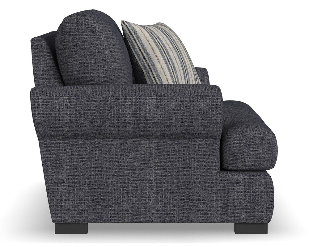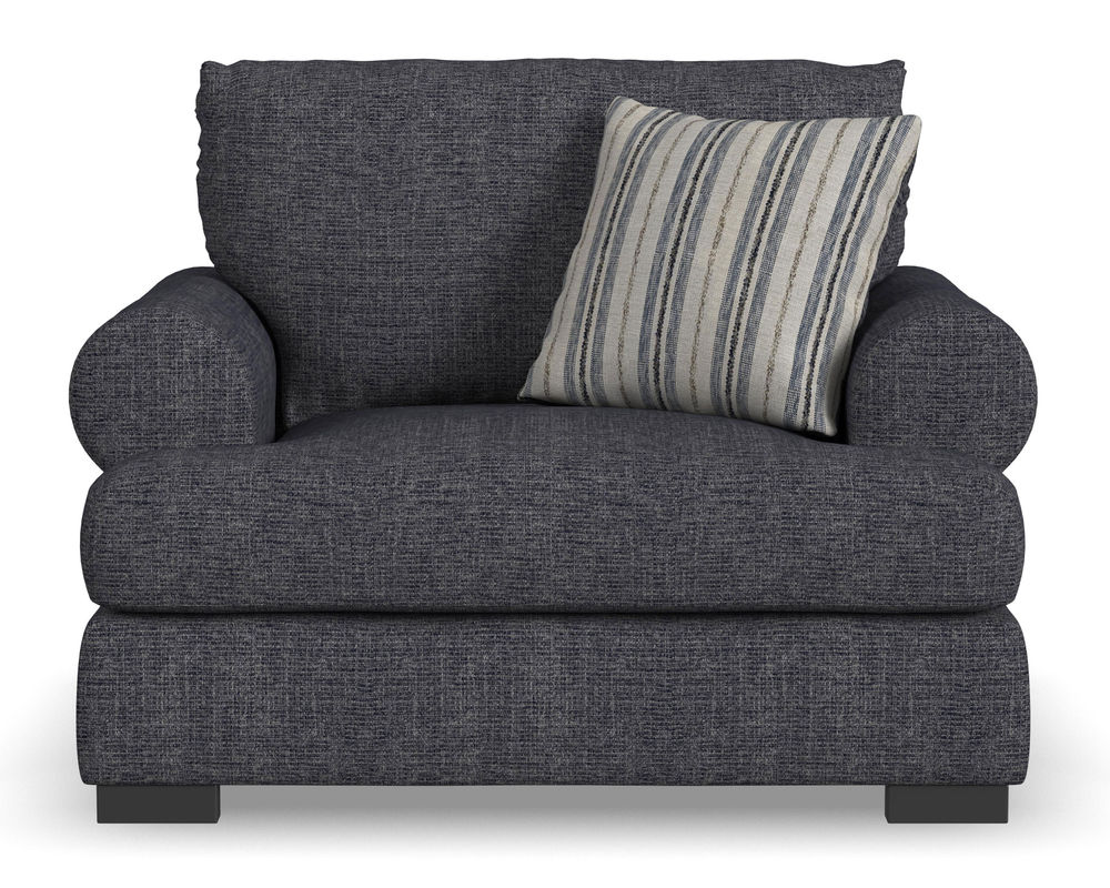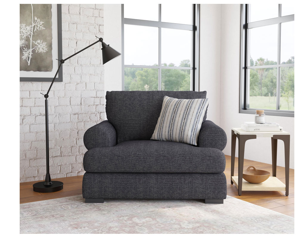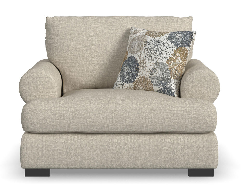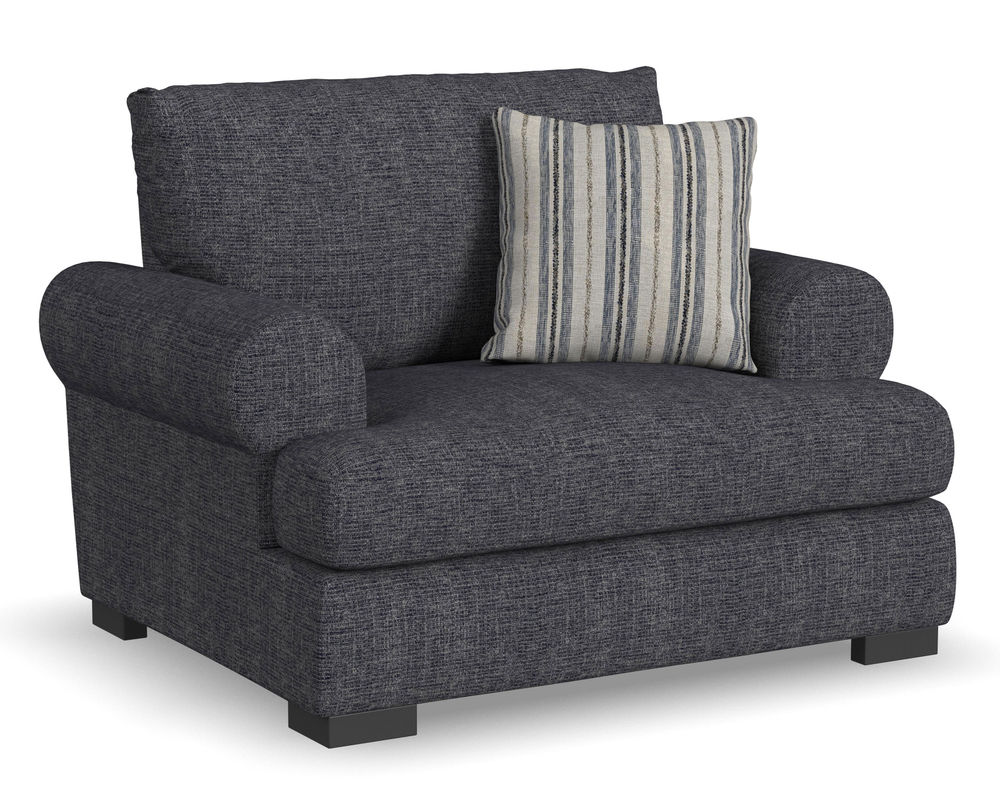 Crafted with attention to detail, this chair and a half boasts black recessed block legs that give it a low-to-the-ground look. This adds to its overall appeal and provides a sturdy base for long-lasting use. Choose from two carefully selected fabric combinations for a personalized touch and style it based on your mood with two-sided accent pillows.