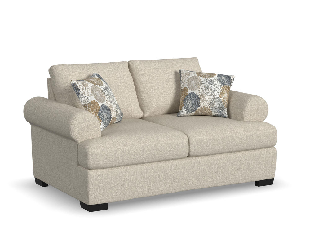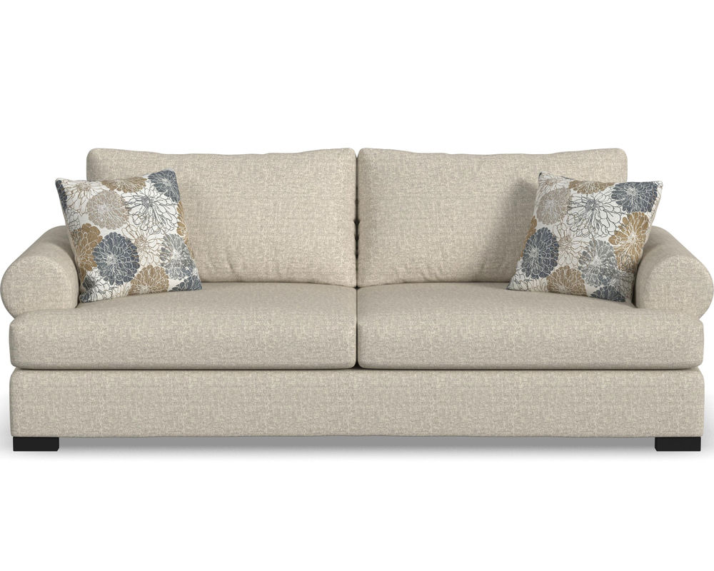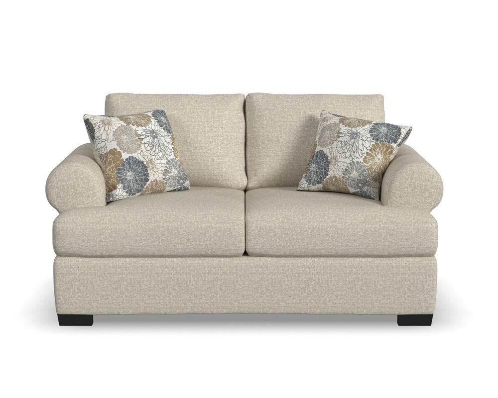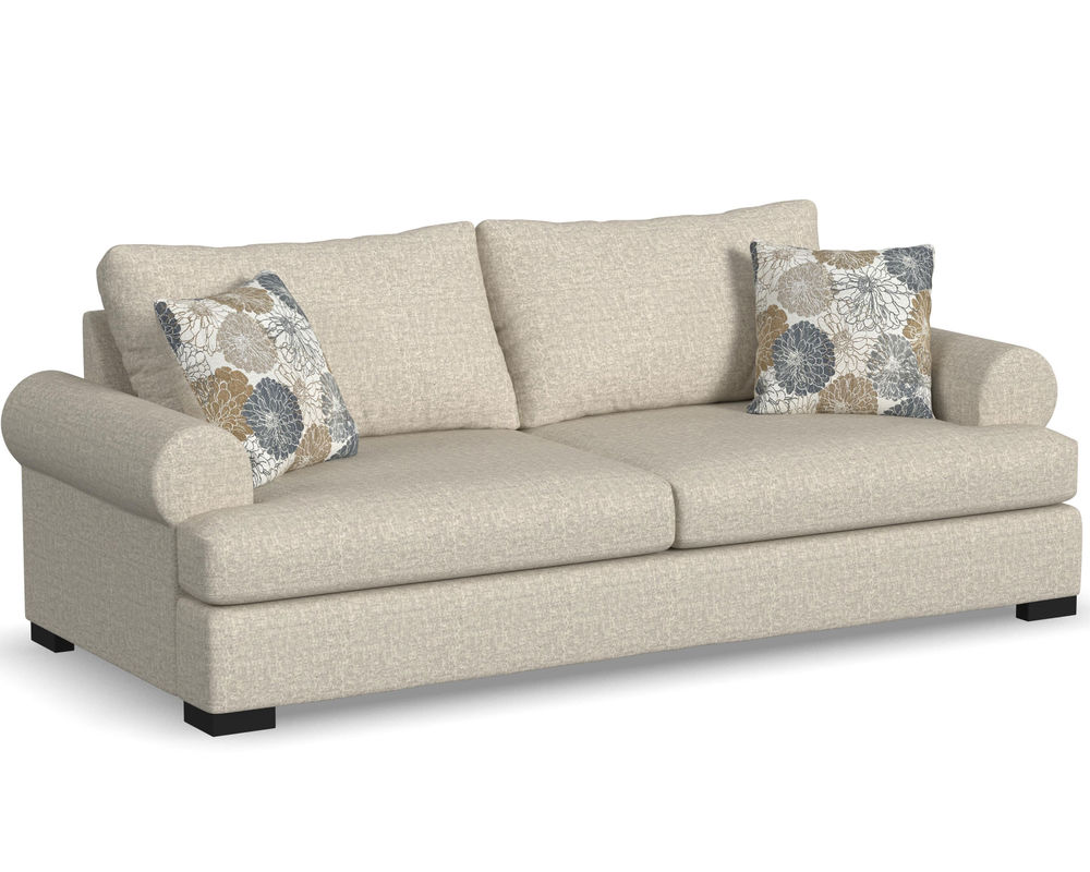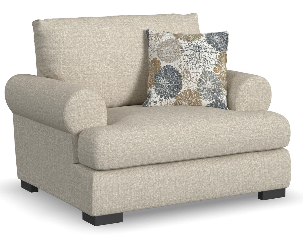 From Sofas and Sectionals.com - Introducing the Florence Chair and a Half - the perfect addition to elevate the elegance of your home. With its charming old soul, this sofa will become your new best friend. The soft roll arms exude a traditional charm that blends with a transitional style. The two wide, loose back cushions add a touch of casual comfort, while the wide, deep, and durable T-shaped seat cushions ensure a cozy and relaxing sitting experience, providing you with a sense of security in your investment.