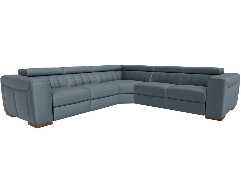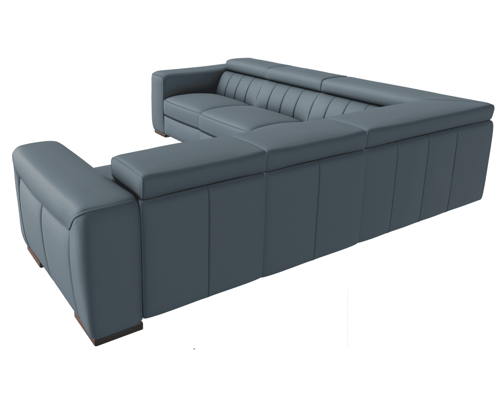 Featuring contrast "moccasin" stitching and adjustable headrests, this sectional is designed to provide you with maximum comfort and relaxation. The wooden legs, a mark of sophistication, add an elegant touch to the overall look, making it a perfect addition to any modern home.