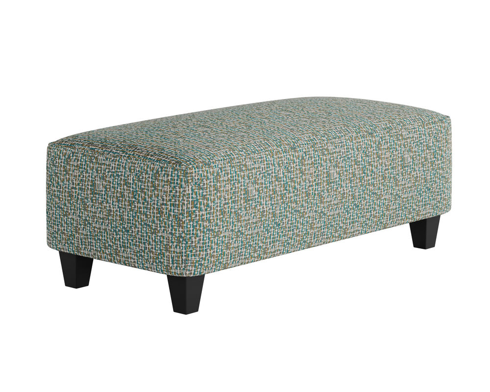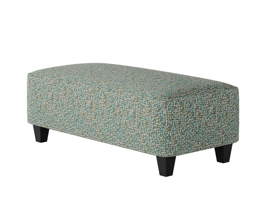 This ottoman is not just limited to sitting; it can also be used as a serving tray or a footrest, making it a versatile piece of furniture for any occasion. The Galaxy Pool material's clean lines and fun pattern, combined with the coffee-finish tapered legs, give this ottoman a clean-line transitional style that will complement any existing decor.