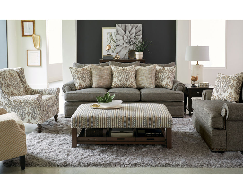 But the most impressive feature of this sofa is its comfort. Deep and plush, this sofa provides the perfect place to snuggle in and relax. To complete your living space, a matching loveseat, chair & 1/2, and ottoman are also available, as well as a matching sectional. And for those who don't like the nail head trim, the sofa is also available without it. With over 100 high-performance fabrics available, you can customize the look of your sofa to perfectly match your home.