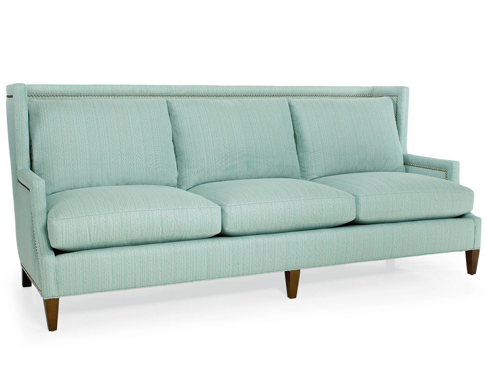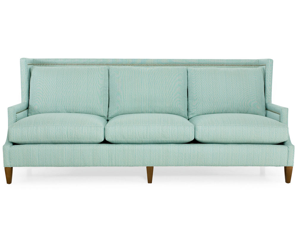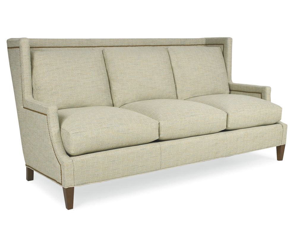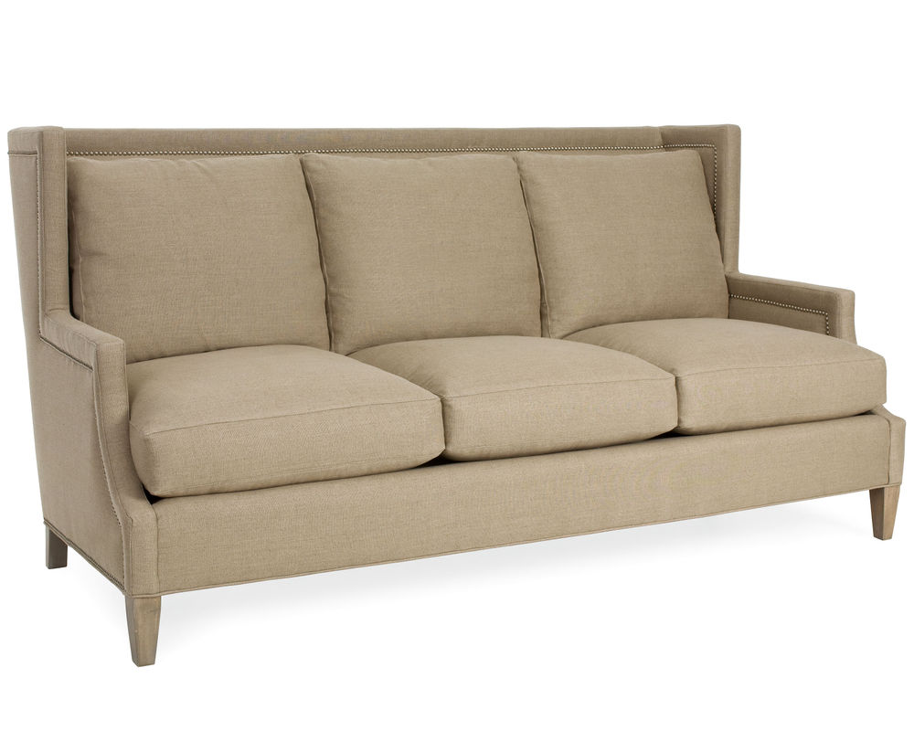 The Garrison Sofa from CR Laine is the perfect addition to any living room for those who value comfort and style. This stunning sofa boasts a tall wing-back design with elegant nailhead trim for a touch of sophistication. The nail head detailing is also featured on the outside arms, adding a luxurious touch to the overall look.