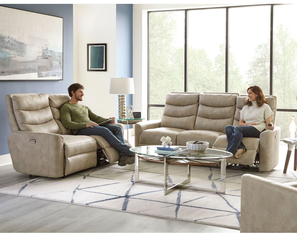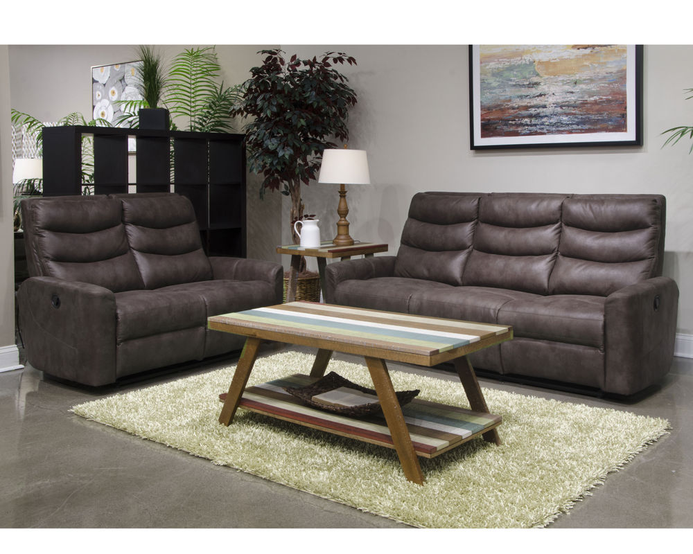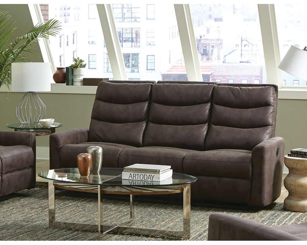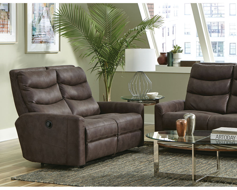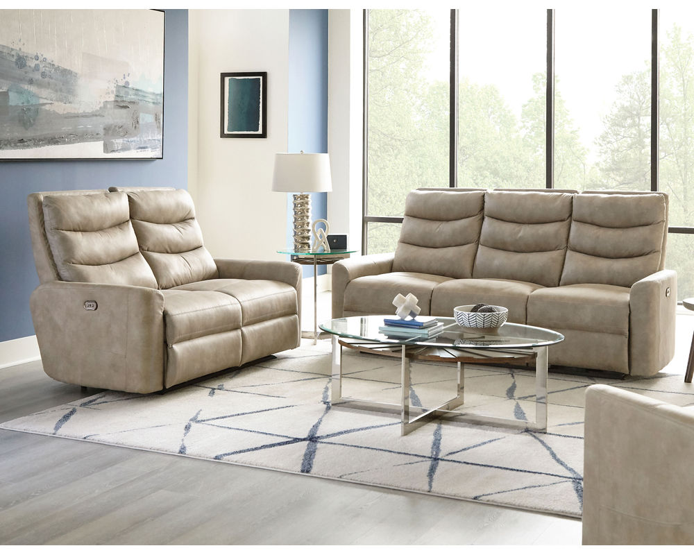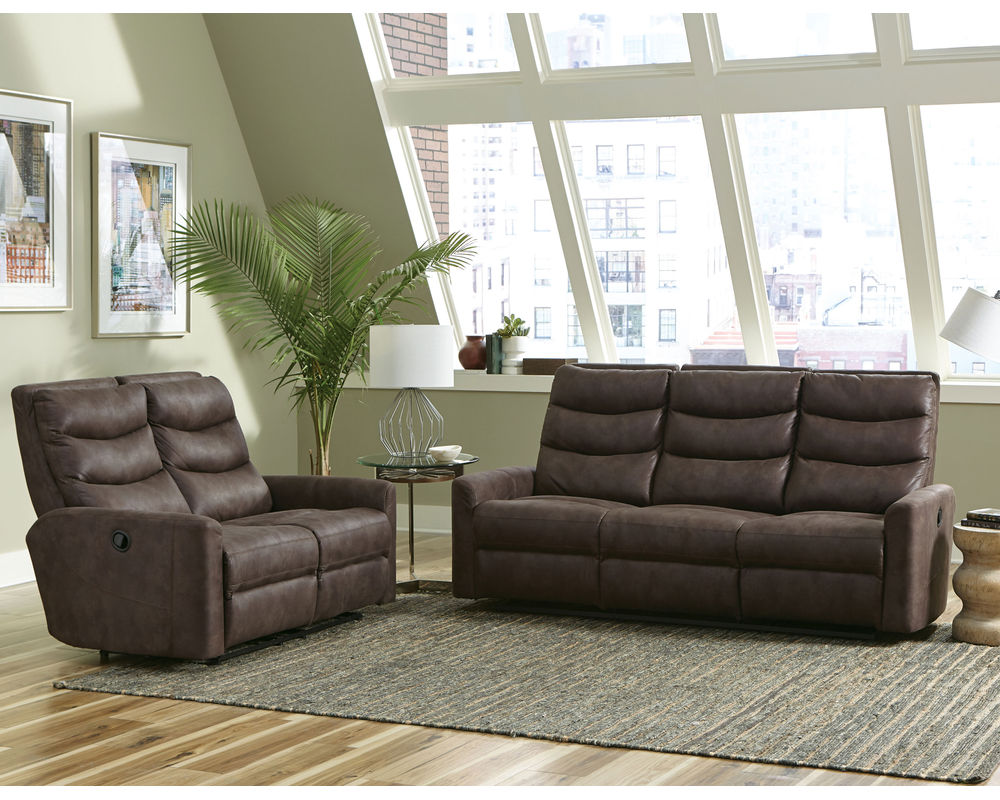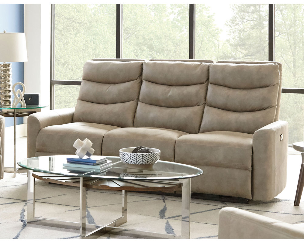 Enjoy the comfort of this soft yet durable faux leather fabric with a contemporary track arm design. Waterfall back provided ultimate comfort and includes a steel seat box frame and Comfort Coil featuring Comfort infused gel. Power Recline also available.