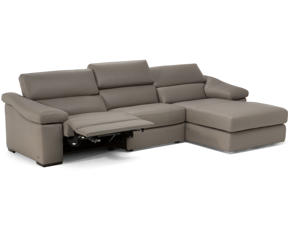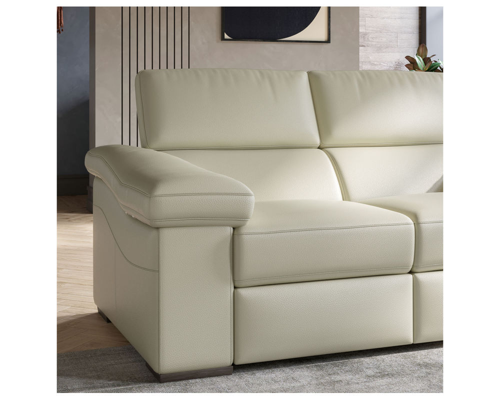 The adjustable sectional that is perfect for any of your personal comfort preferences is the Gioia B901 100% Top Grain Leather Reclining Sectional features a power recliner that lets you relax back into your preferred position with no effort. The Gioia Reclining Sectional features headrests that can be lowered or lifted by how you want to relax. On either side of the Gioia B901 100% Top Grain Leather Reclining Sectional are large, plush saddle arms with the perfect room for resting your elbows. All of the Gioia B901 Reclining Sectional is upholstered in 100 percent top-grain leather that is only going to get better with age. It is soft and supple and, paired with its comfortable cushions, provides a space perfect for sinking into.