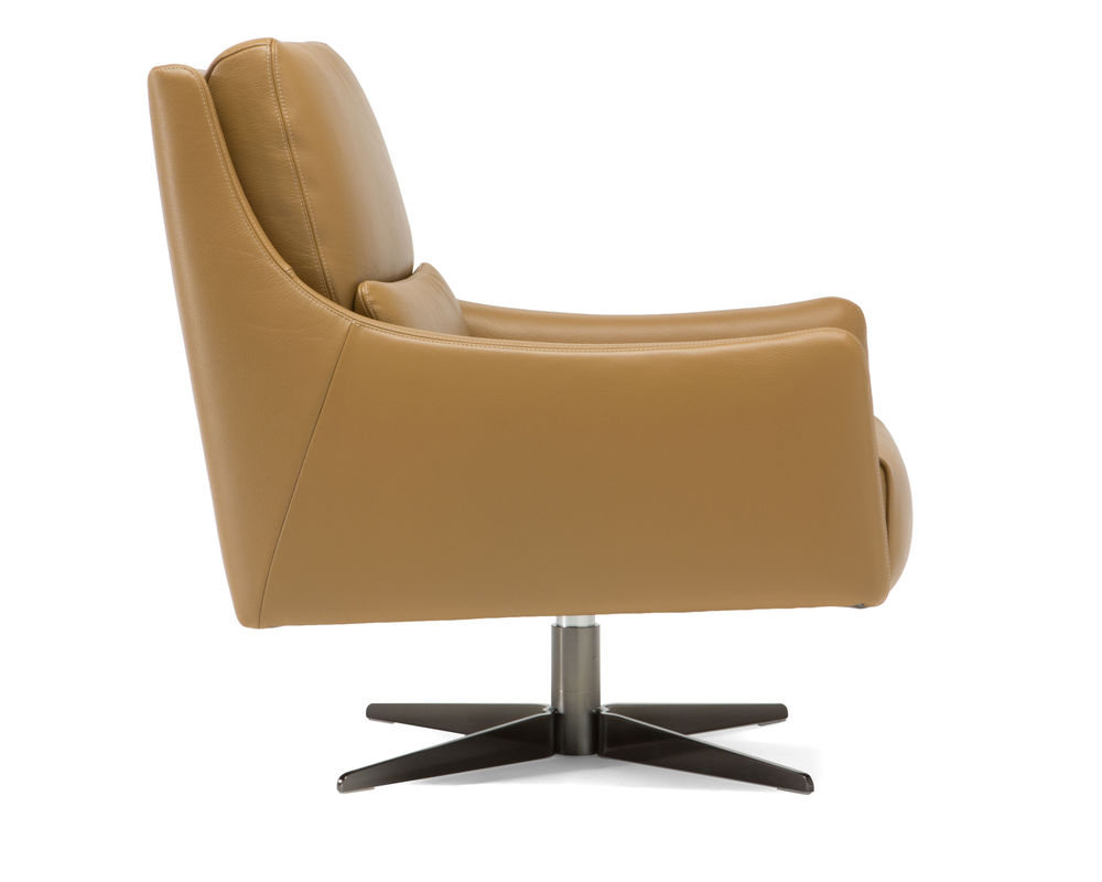 Ideal for offices and sitting areas that adhere to traditional design, the Gloria C065 Top Grain Leather Chair is a handsome leather chair that can quickly complete any space. This chair features ultra-thin track arms that swoop down in a curve from the top of the back of the chair. On the back cushion is horizontal tufting designed to add beautiful detail and give you the lower lumbar and upper back support you need. This chair can also incorporate a swivel function, allowing you to twist and turn the chair as much as you'd like for greater convenience and comfort. It is upholstered in ultra-sleek, sophisticated, 100 percent top-grain leather on every visible inch, the color of which you can choose to suit the decor in your space best.