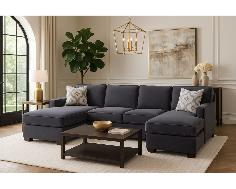 The Gramercy Park Sectional offers spacious seating and timeless transitional design, making it the perfect centerpiece for today’s living spaces. With its clean track arms, supportive cushions, and versatile configurations, this sectional delivers both style and everyday comfort. Available in a wide selection of fabrics and finishes, the Gramercy Park Sectional can be customized to fit your home and lifestyle. Expertly crafted in the USA, it’s built for durability, comfort, and long-lasting appeal.