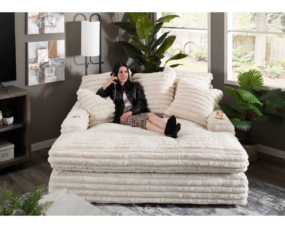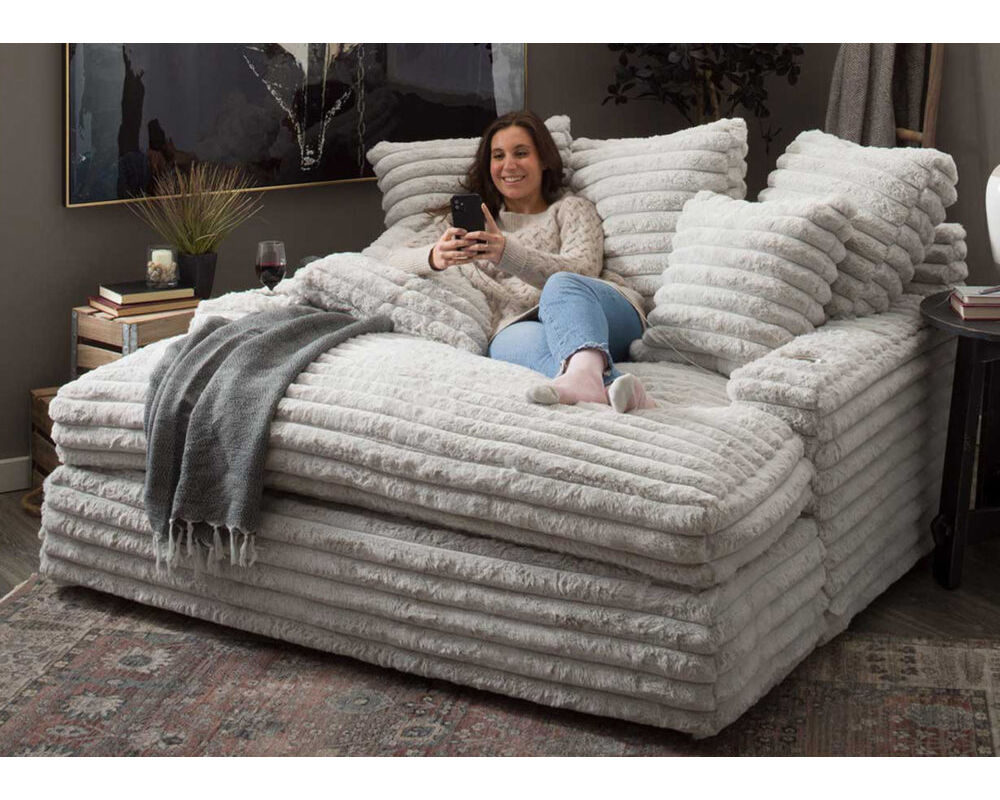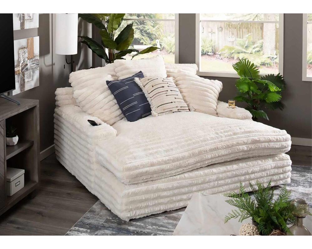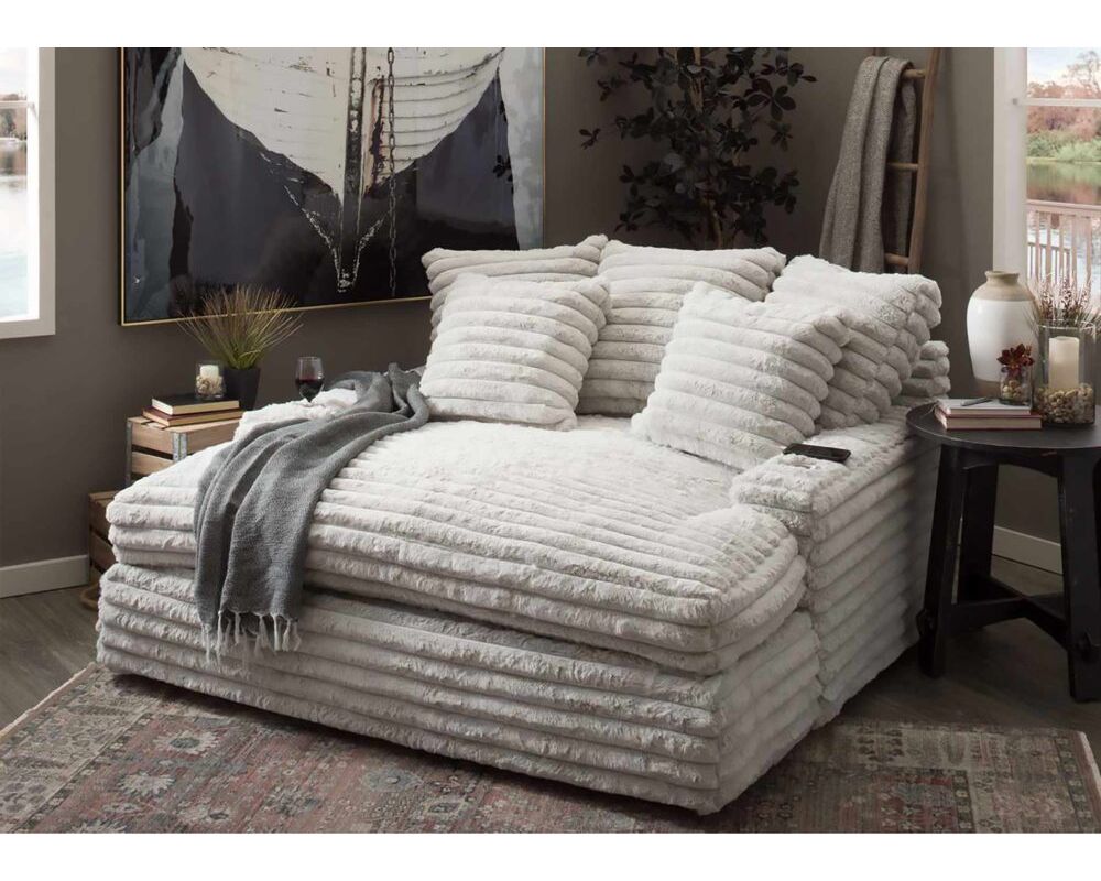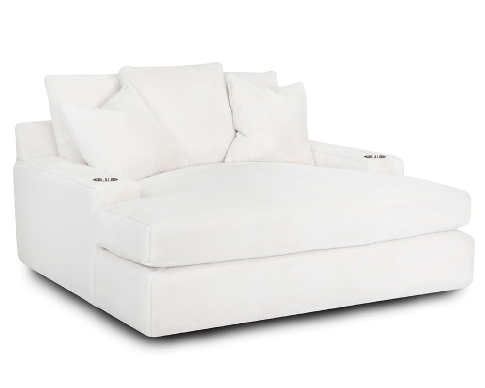 This Franklin Furniture chaise lounge is perfect for those who enjoy watching movies and TV shows from the comfort of home. With the dual cupholders and USB charging ports, you can stay refreshed and connected while you relax. And the generous cushioning and oversized pillows make it perfect for lounging in style. Take advantage of the introductory savings offer today and enjoy the ultimate home theater experience.