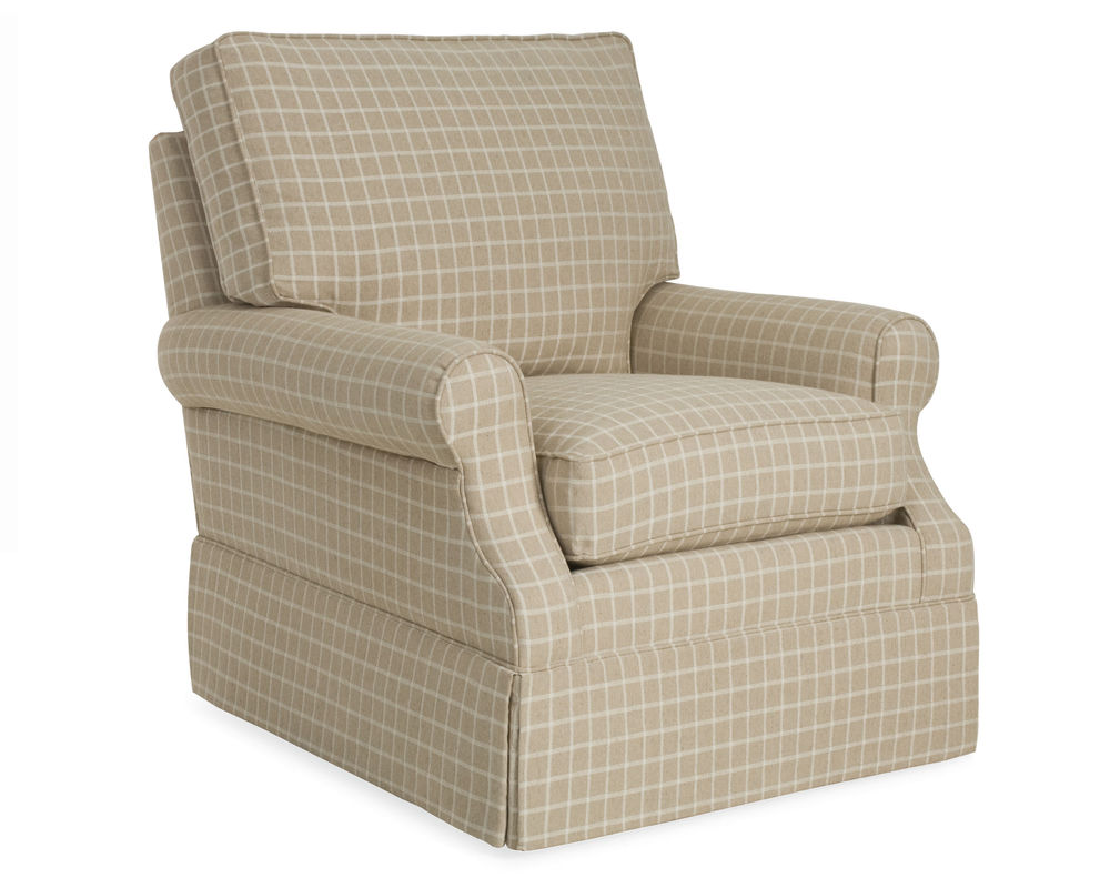 The Haddonfield Chair from CR Laine perfectly blends traditional design and modern comfort. This exquisite chair features a kick pleat skirt that adds a touch of elegance to its overall look. The gently sloping rolled arms provide a comfortable and stylish armrest, while the semi-attached back cushion ensures it stays in place for a neat appearance. The seat cushions are reversible, allowing you to switch up the look of your chair whenever you want.