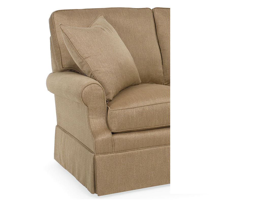 One of the key features of this sofa is its elegant kick pleat skirt, which perfectly complements the gently sloping rolled arms. The semi-attached back cushion not only adds to the sofa's overall appeal but also ensures it stays in place, providing a comfortable and hassle-free seating experience.