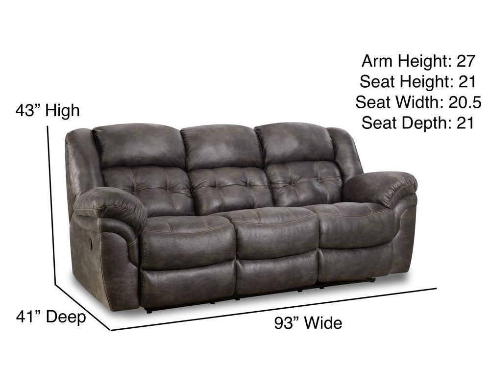 Haven 93" Reclining Sofa The Haven Reclining Sofa offers plush comfort and timeless style—perfect for everyday relaxation. This manual reclining sofa features two smooth-operating recliners, allowing you to kick back with ease. With pad-over chaise seating, solid foam arm pads, and durable 100% polyester upholstery, the Haven is built for lasting comfort and easy maintenance.