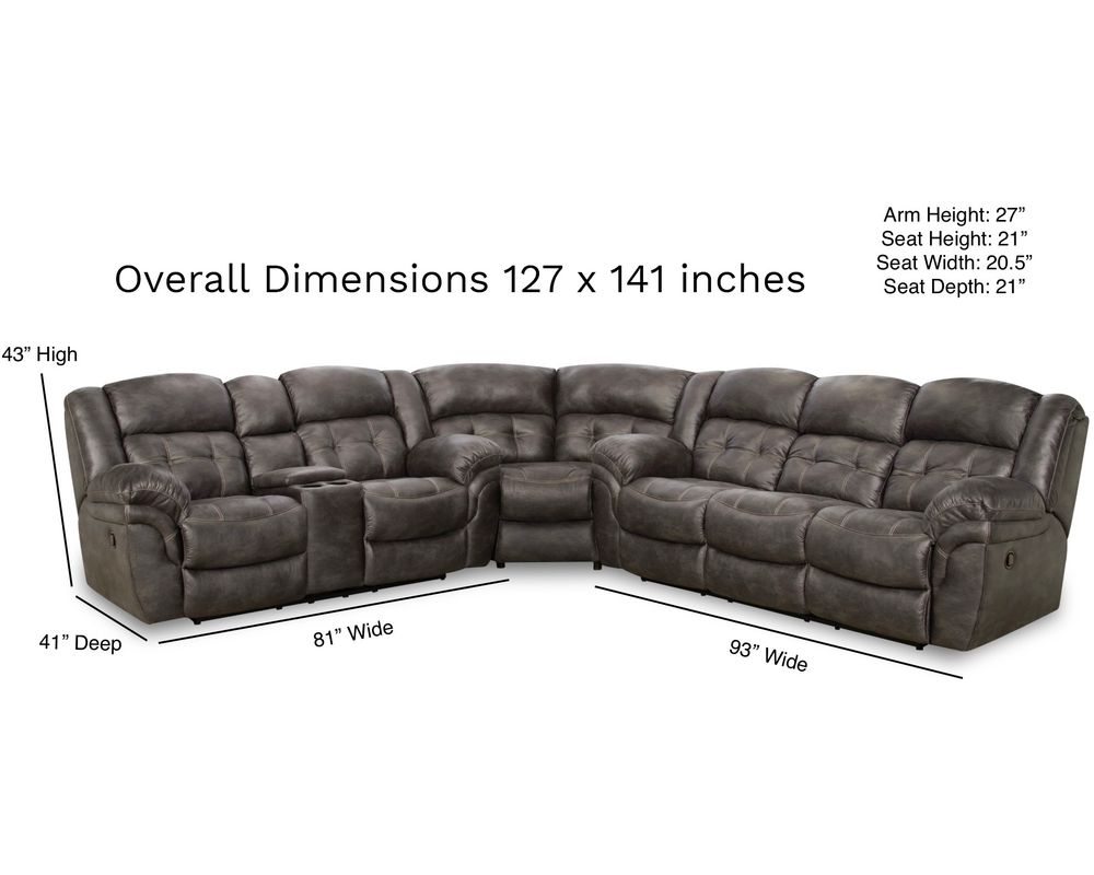 With a reversible design, you can position the power reclining sofa and power reclining console loveseat on either side using the Super Wedge, giving you layout flexibility to suit your space. Finished dimensions are 141" x 127"