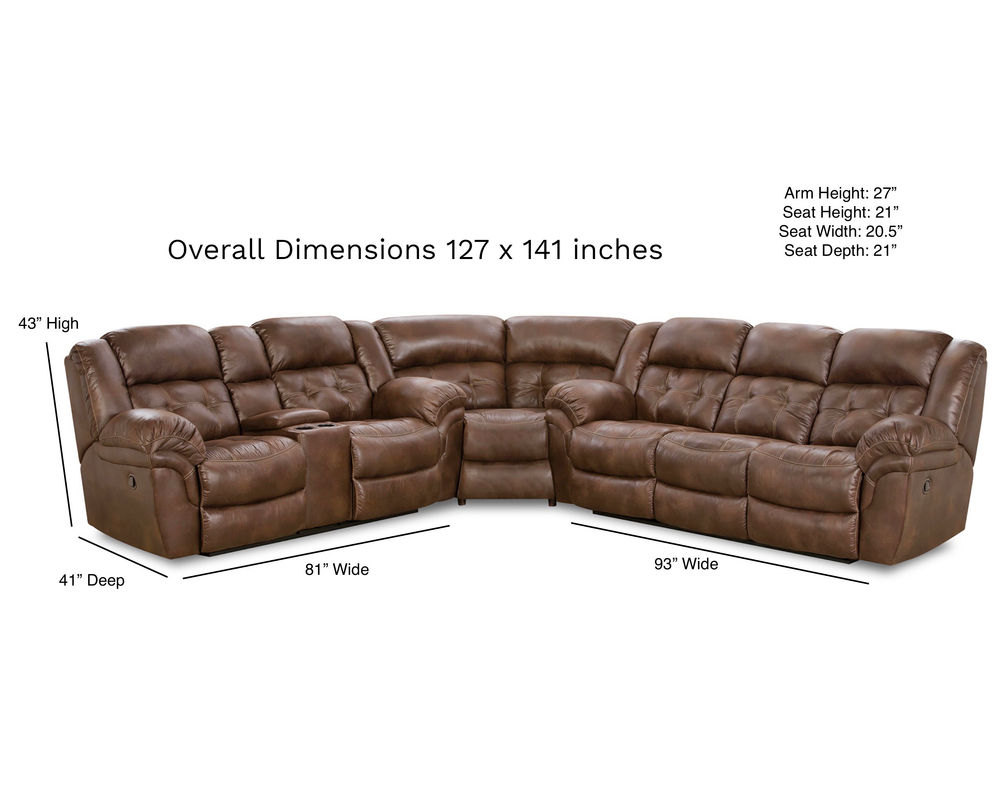 With a reversible design, you can position the power reclining sofa and power reclining console loveseat on either side using the Super Wedge, giving you layout flexibility to suit your space. Finished dimensions are 141" x 127"