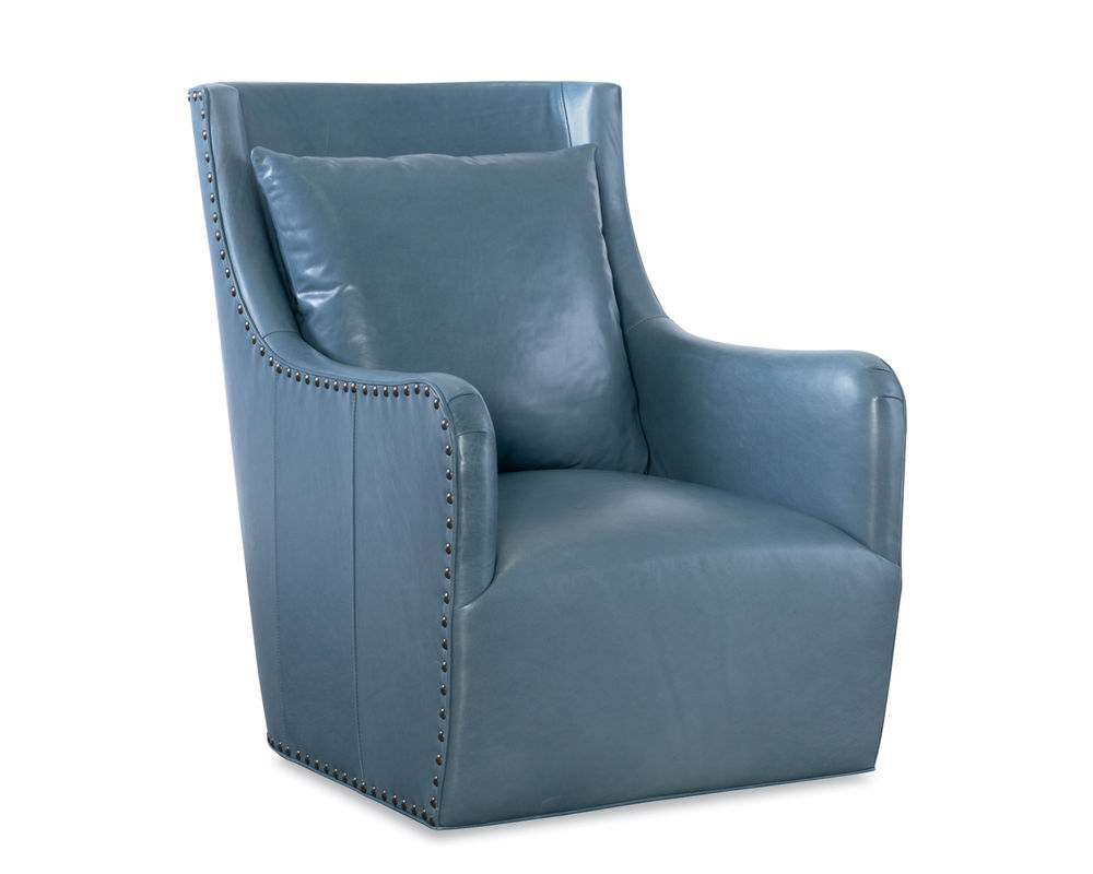 Indulge in the ultimate combination of comfort and style with the Heidi Swivel Chair from CR Laine. This stunning piece boasts a casual yet elegant design, featuring English-styled arms and eye-catching nailhead trim on the outer edges of the chair.