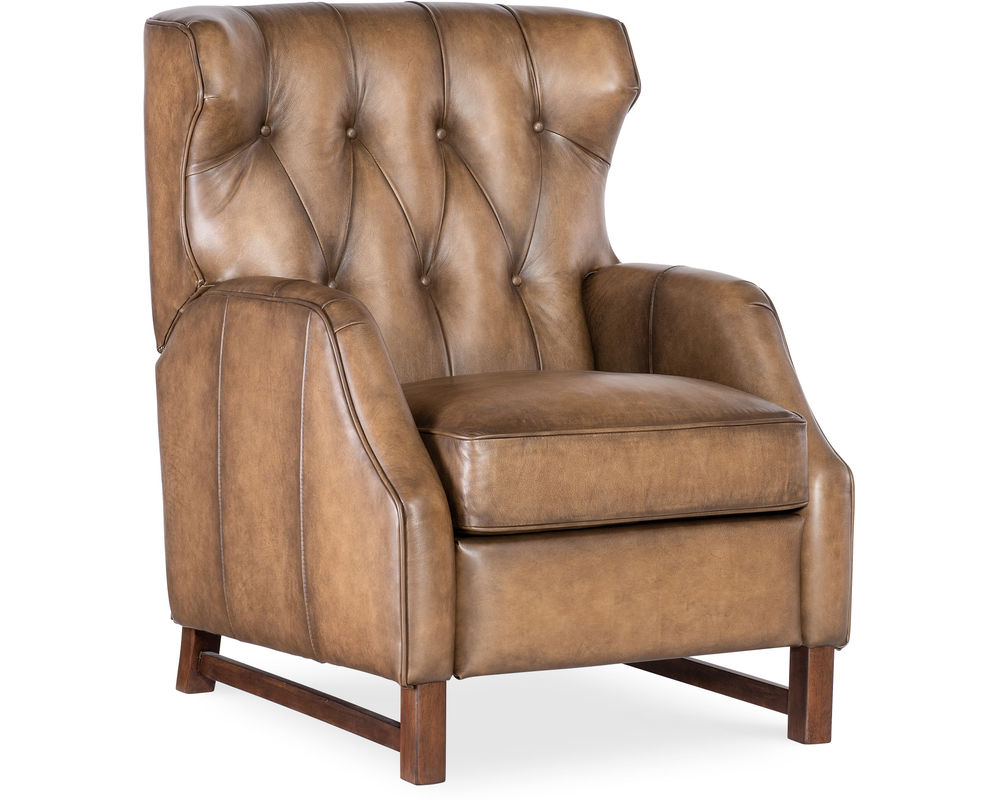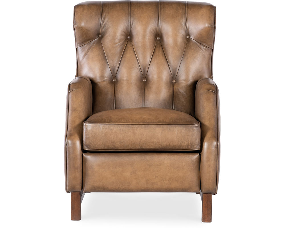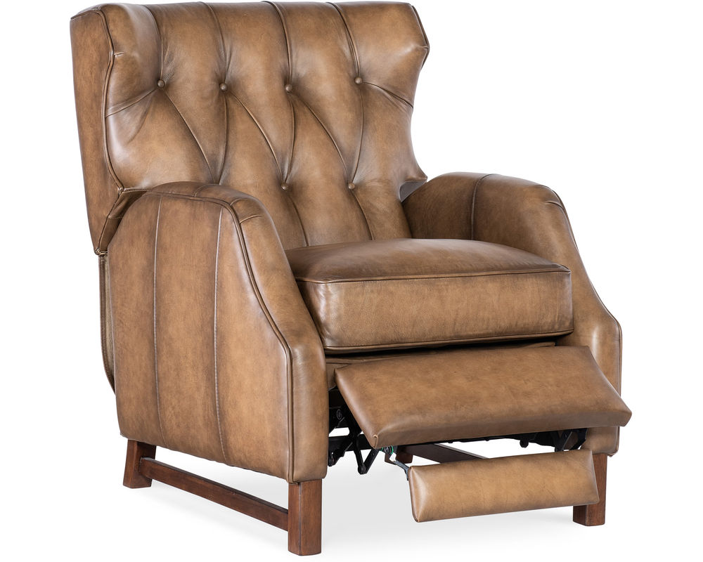 Classic style meets modern comfort in the Henderson Press Back Recliner by Hooker Furniture. Upholstered in luxurious semi-aniline leather, this recliner features a gently tufted wing back, smooth swivel and gliding motion, and power reclining functionality—all designed for seamless relaxation. The Henderson brings a refined, traditional look with updated comfort features perfect for today’s living spaces.