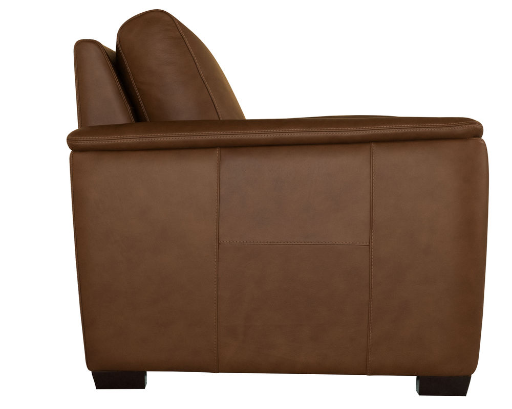 • Sculptural, padded arms with a refined welt trim fade into the seat