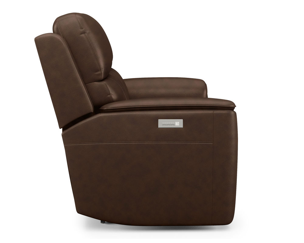 • A power control on each side of the loveseat independently adjusts the headrest, recline, and lumbar for a personalized sit