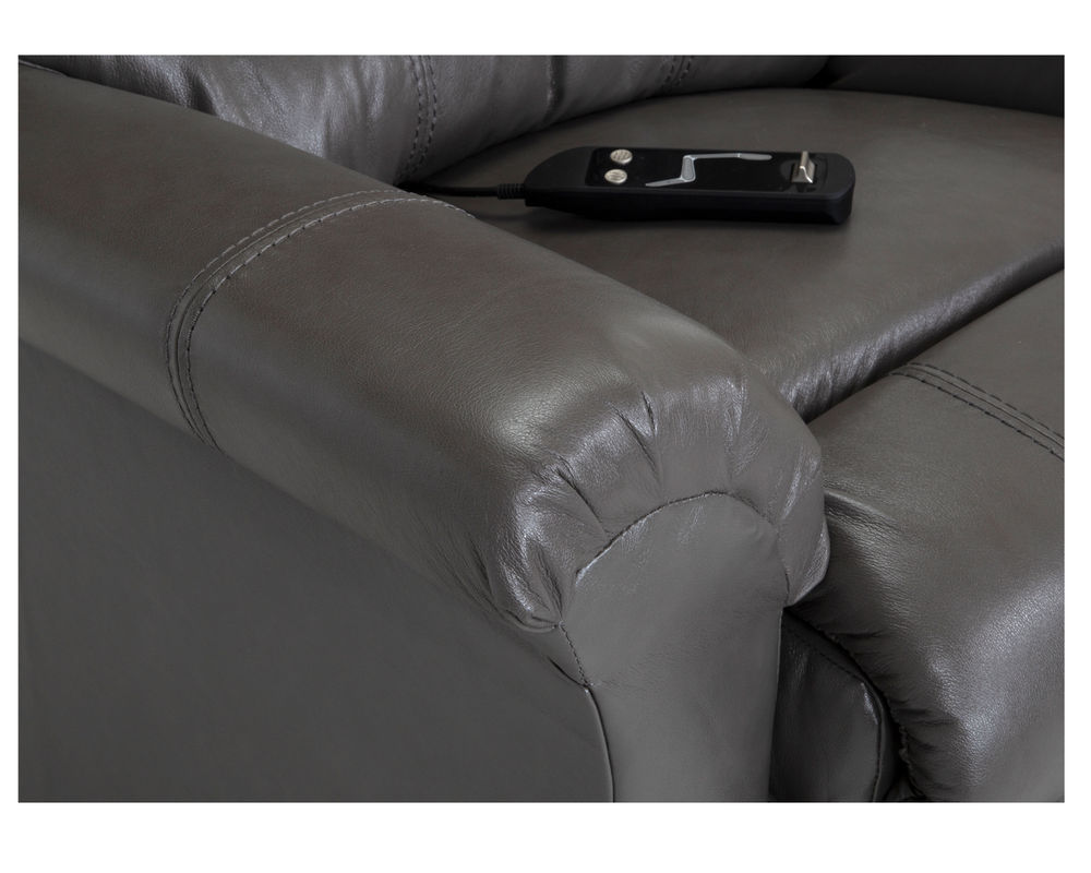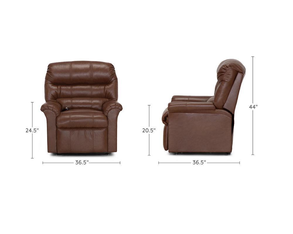 The 497 Hewett Lift Recliner represents the way armchairs were meant to be. This recliner is covered in our Renevarré environmentally friendly genuine Italian leather. It features a 3-way chaise, heated seat and back, massage, and USB. This lift chair comes standard with a battery backup, designed to take you from full recline to an upright, closed position.