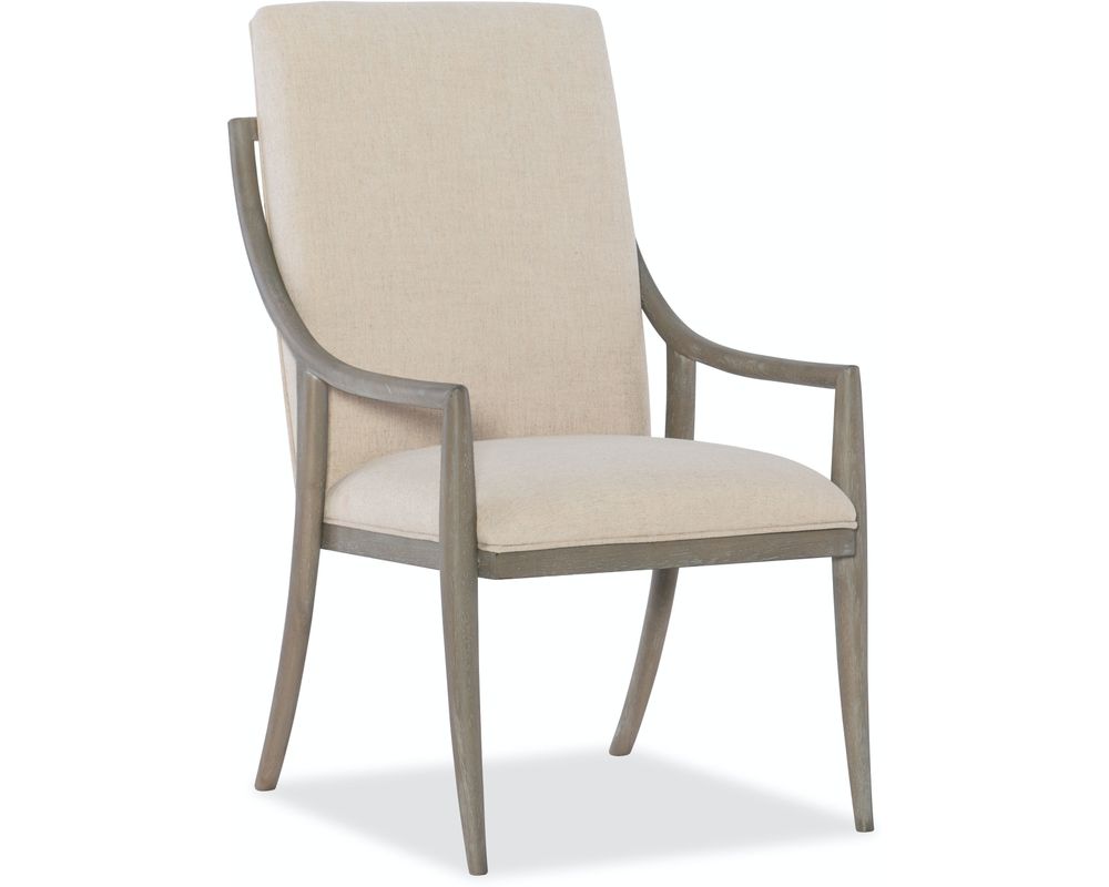 Soft, rounded forms combine with sand-blasted greige and antique white finishes to create an inviting transitional boutique collection in Affinity. The main finish for the 20-piece collection of bedroom, dining room, occasional, accents and home entertainment is a wire-brushed greige (gray/beige) on quartered white oak. Pewter and antique white hardware and soft linen fabrics add intrigue.