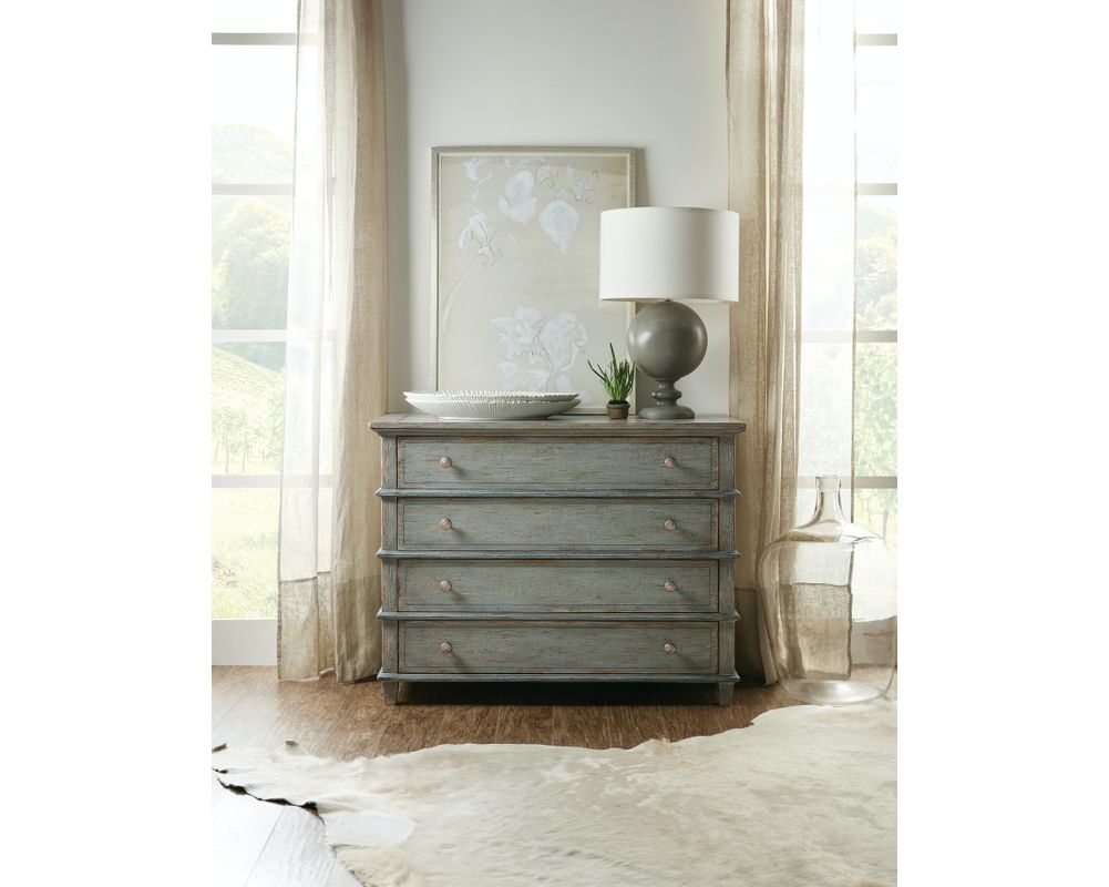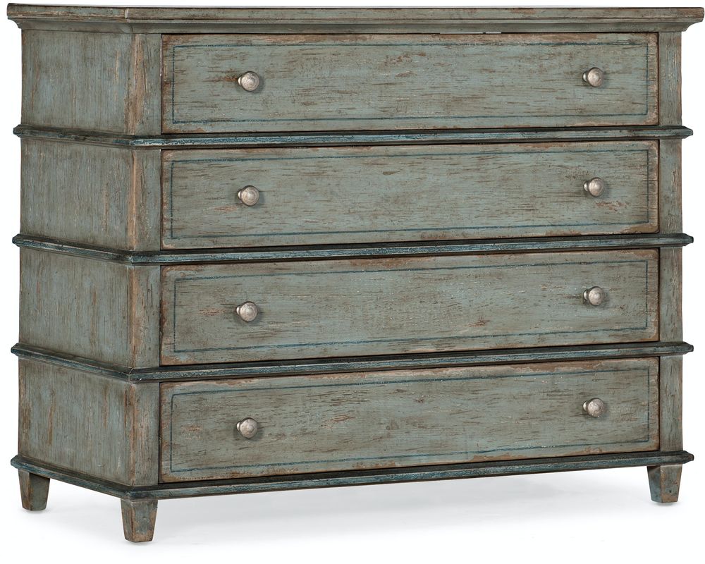 Delivering the casual look and feel of ageless pieces acquired during travels in the Old World, Hooker Furniture is featuring Alfresco, a whole-home collection with relaxed European provincial styling. The Alfresco collection has a well-traveled aesthetic that is inspired by heirloom pieces found in homes perched on cliffs along the Italian coastline of the Adriatic Sea. The collection of bedroom, dining room, occasional and accent furniture features moderately distressed designs that are enhanced by accent paint finishes that create an eclectic feel. Alfresco is constructed of oak, maple and hickory veneers and poplar solids, and includes several pieces with stone and metal accents.