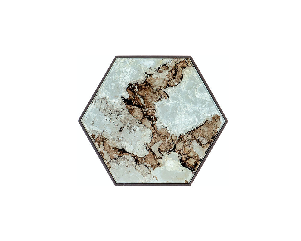 Lightly-scaled metal base and a reverse-painted glass top 1 / 2
