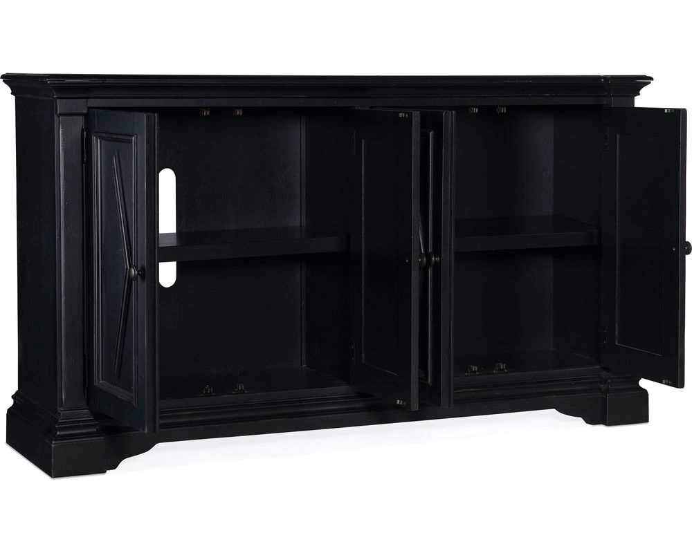 Four-Door Cabinet is crafted of Oak and Birch Veneers with a soft black painted finish. 1 / 3