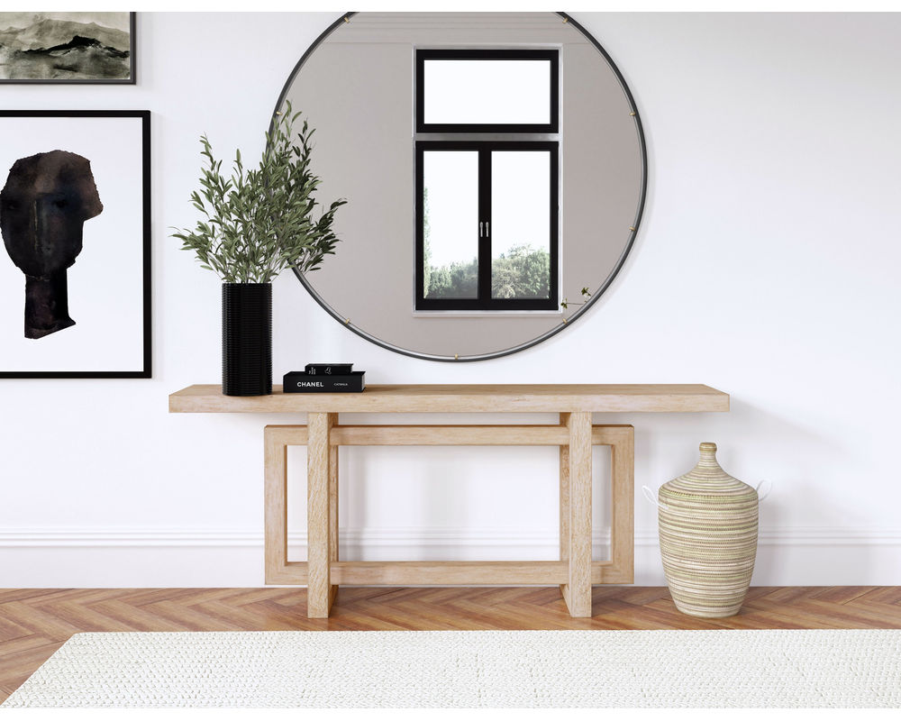 Modern Console has an interlocking base design and is crafted of clean Acacia Solids 1 / 4