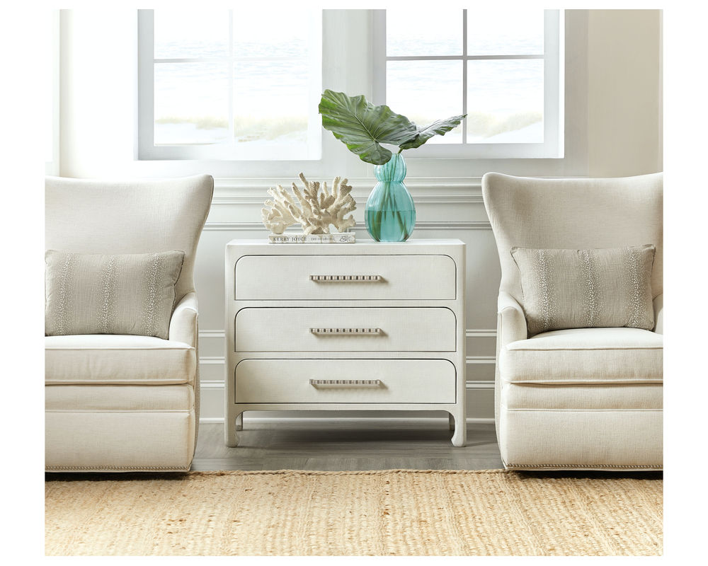 Designed to create a comfortable and inviting retreat within the home, the Serenity collection is defined by its casual finishes and variety of organic textures and materials that combine to deliver a relaxed aesthetic. Inspired by casual, waterfront living, the collection was designed to bring the relaxed aura of the outside in -- no matter where the consumer lives. White oak veneer delivers two key finishes – a whitewashed look and a weathered gray – and is accented with shades of soft coastal blue, sand blasted pine and soft white bronze metal details. Organic materials including abaca rope, natural stone, painted grass cloth, louvered details, and faux coral motifs add to its casual style. The collection’s silhouettes were designed to reflect three distinct personalities – a traditional nature with serpentine shaped case pieces and a softer aesthetic, a modern persona with linear shapes and coral accents, as well as a more casual contemporary character with soft-edged case pieces and organic surfaces.