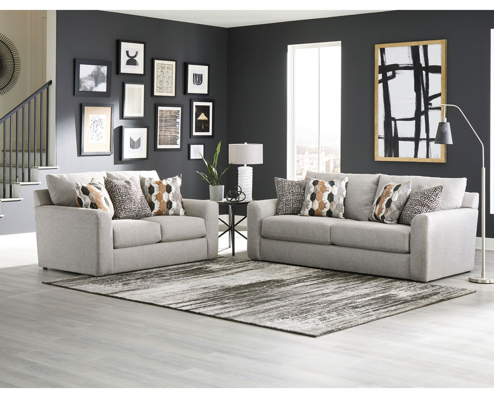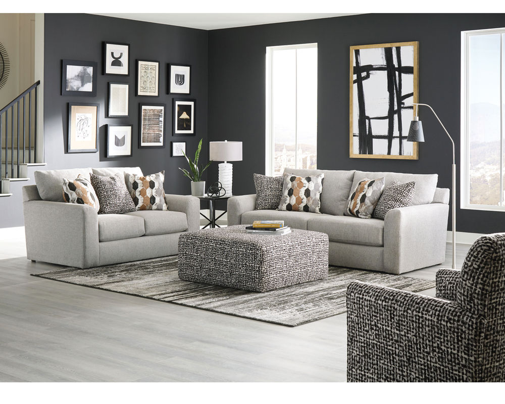 Introducing the Jackson Furniture Hooten Sofa Collection, a stylish and transitional addition to any living room. This collection features a beautiful sofa as the centerpiece, with four coordinating accent pillows to add a touch of style. To complete the look, you can add the matching loveseat and chair and a half, as well as the 42” square rectangular ottoman. With its unique design and eye-catching accents, this sofa collection is sure to impress your friends and family. Whether you are looking to upgrade your living room or just add a touch of style, this collection is perfect for you. Let the Jackson Furniture Hooten Sofa Collection transform your living space and make it a place you will want to show off.