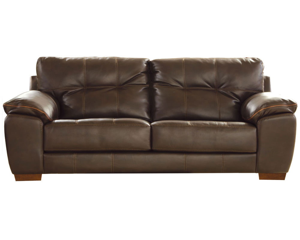 Spacious, deep and inviting, the Hudson 97" Sofa by Jackson is a classic faux leather sofa that is perfect for the room you relax in the most. The Hudson 97" Sofa by Jackson features deeply set cushions and large arms, offering you a generous place to sink down into when you need to unwind. This sofa has two back cushions that sit atop the two seat cushions to give everyone plenty of space on their wide bodies. The back cushions of the Hudson 97" Sofa by Jackson feature tufting which provides the sofa with just enough detail and accent. On either side of those plush, oversized cushions, there are equally as plush, oversized saddle arms that offer a large, soft area to rest your arms. Beneath the armrests are chunky arms that lead down to the base of the Hudson 97" Sofa by Jackson where blocky wooden feet support the sofa.